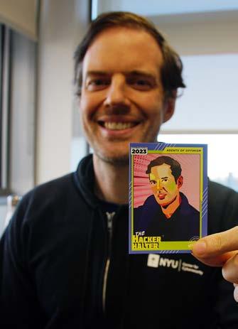 The campaign, which was mentioned in a recent LinkedIn article (https://www. linkedin.com/pulse/7-sparks-he-marketingexcellence-inspired-us-2022-jim-tudor/?trac kingId=cn7mYL4XRq2KlhX9CS9xDA%3D% 3D) as a “spark of inspiration” among higher education marketing programs, comes in the wake of an announcement by NYU on November 30 of a $1 billion investment in its engineering programs that included the purchase of 3 Metrotech (https:// engineering.nyu.edu/about/nyu-investing1-billion-tandon). In stating its plans for the new funds, the school affirms a special commitment to support research efforts in securing wireless infrastructures and supply chains, data science, and sustainability. These choices are echoed in the selection of the “Agents of Optimism” team.