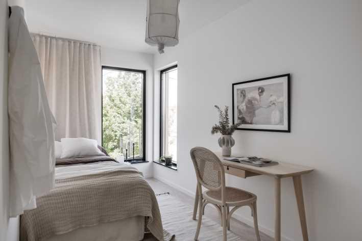 Tre rymliga sovrum med plats för säng med tillhörande sängbord och skrivbord om så önskas Gott om förvaring i garderober.