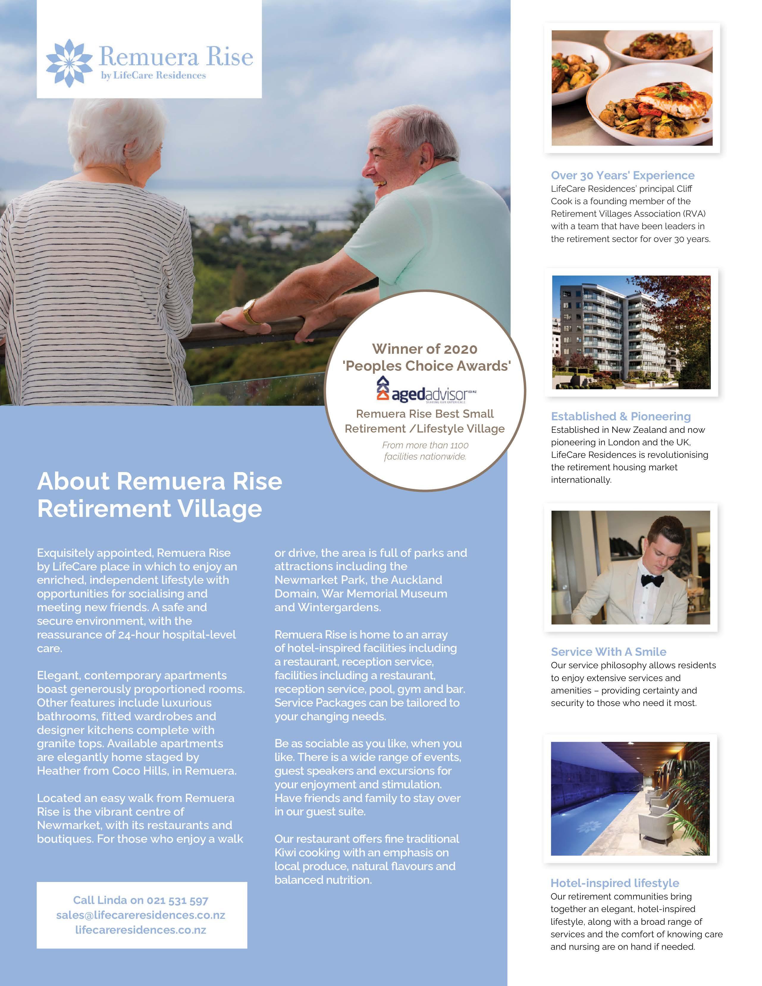 With both parties incredibly proud of the award, there are plans to continue refurbishing and upgrading facilities to make Remuera Rise even more welcoming and luxurious for residents.
