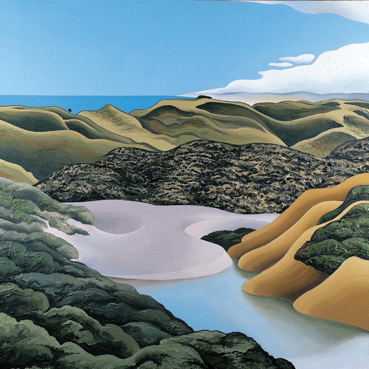 Binney’s landscape paintings after his travels in the early 1970s are a paean to the noonday light and landscape of Te Henga, now seen and experienced more intensely than ever before – as he himself noted apropos of his ‘Other Places and Homecoming’ exhibition: