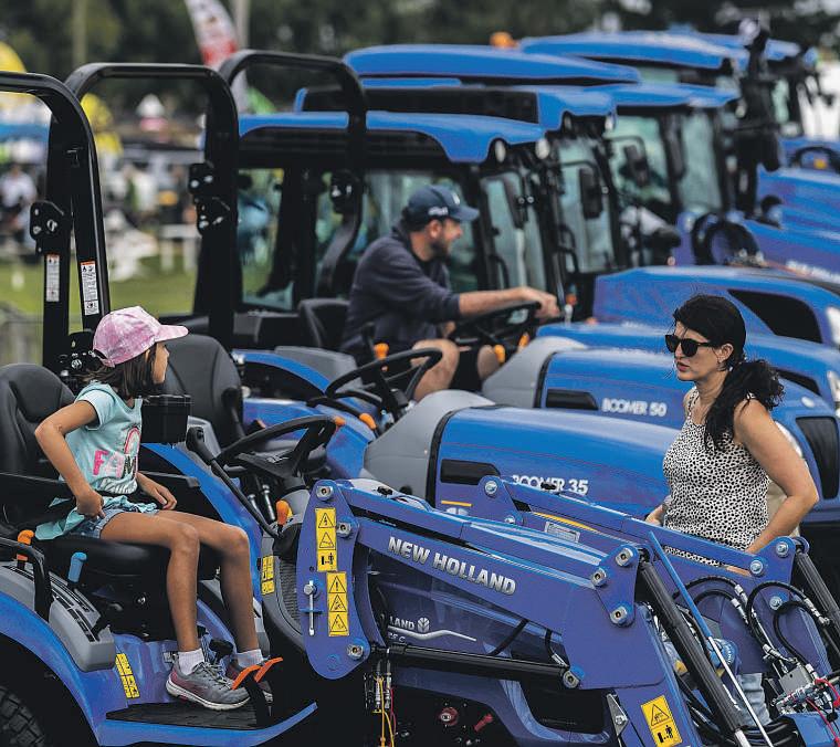 This year – the 31st year of Central Districts Field Days at Manfeild, Feilding – the strong contingent of politicians seemed to win out. There was the former head of Federated Farmers, now ACT MP, Andrew Hoggard in a pale pink shirt, checking out the tractors. Prime Minister Christopher Luxon, waving a tiny black and white flag as he swept around the racetrack on a lawnmower.