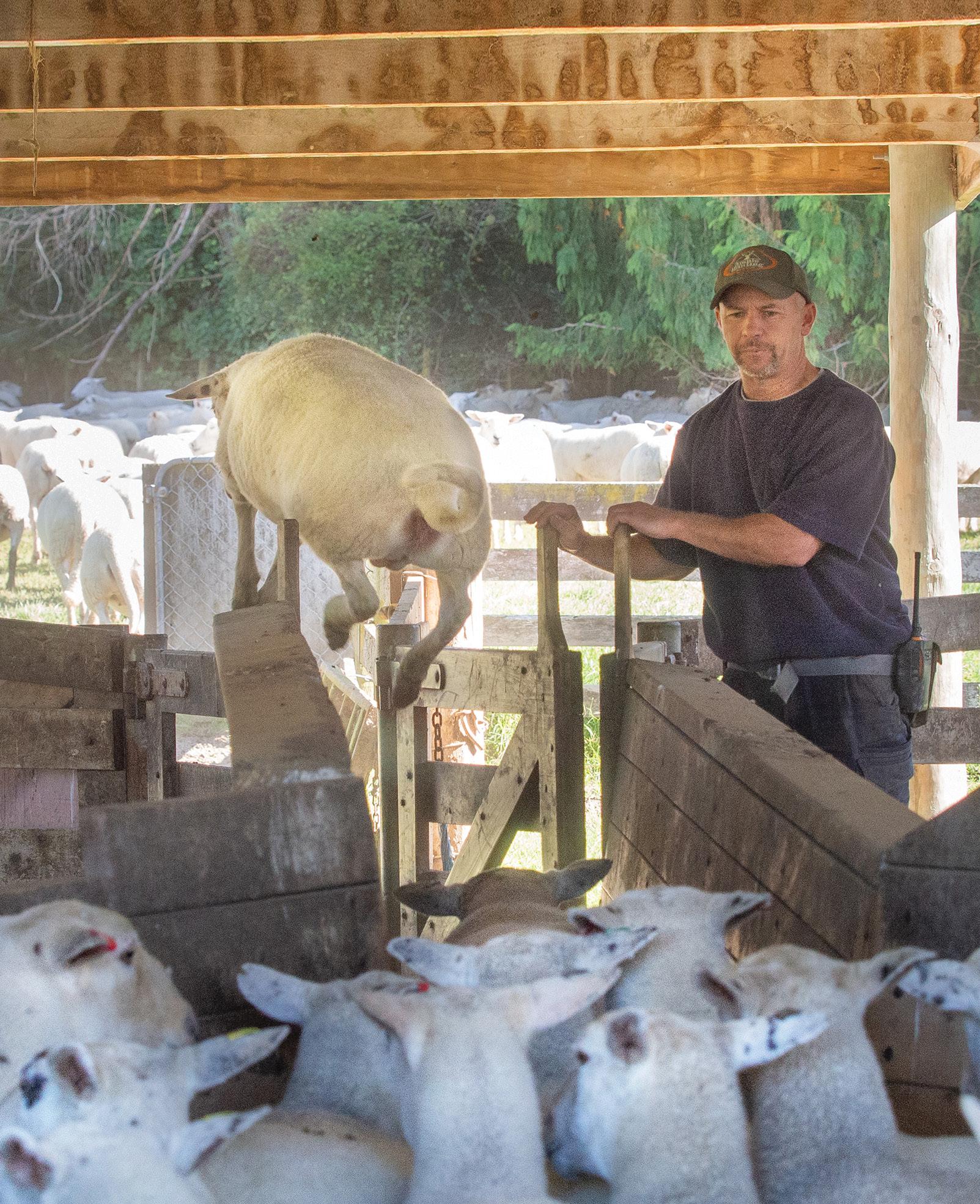 “We decided to create our Kaahu White breed because we wanted a very low input, high-output breed of sheep that is calmer and more user-friendly than Wiltshire sheep,” he says.