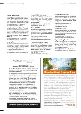 Rauhihi, Michael Hemi Would any lawyer holding a will for the abovenamed, formerly of 13A Stuckey Street, Levin, who died on 18 March 2017 aged 48 years, please contact Kelvin Campbell of Cooper Campbell Law: kelvin@coopercampbell.co.nz 06 368 6157 PO Box 540, Levin 5540