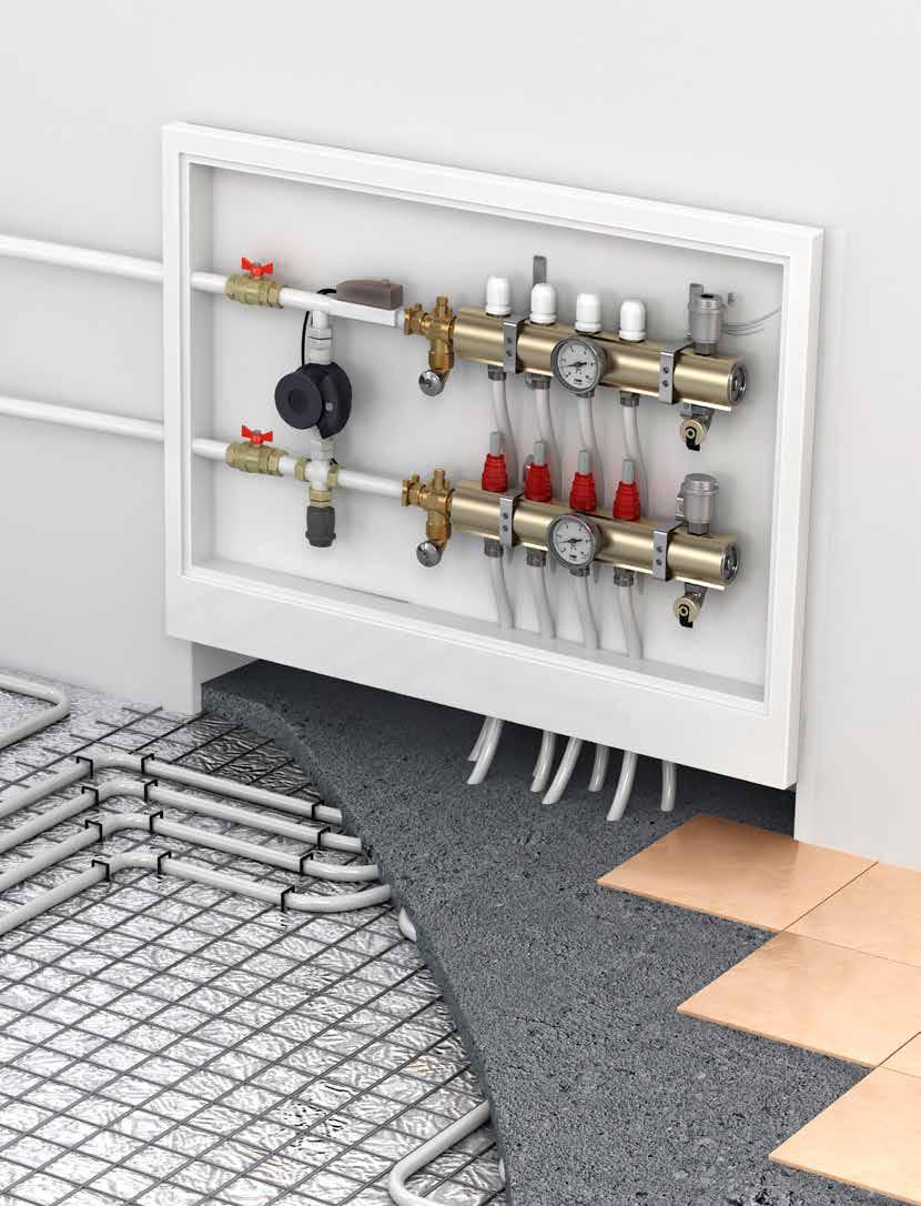End caps and tools are colourmatched for faster, easier installations, and red pipe clips quickly identify hot lines from cold