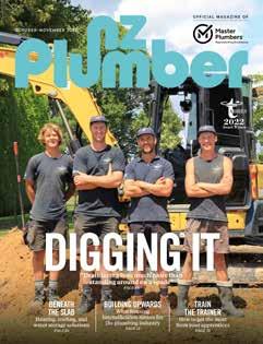 Featured on our cover this issue is Sam Arundel and the team from The Drainage Department. Sam was awarded the 2022 New Zealand Plumber, Gasfitter or Drainlayer of the Year Award for his excellent trade and leadership skills. He is on a mission to change traditional perceptions of drainlaying and, with his wife Zennor, has created a business that both looks great and provides excellent service. Read more on page 48.