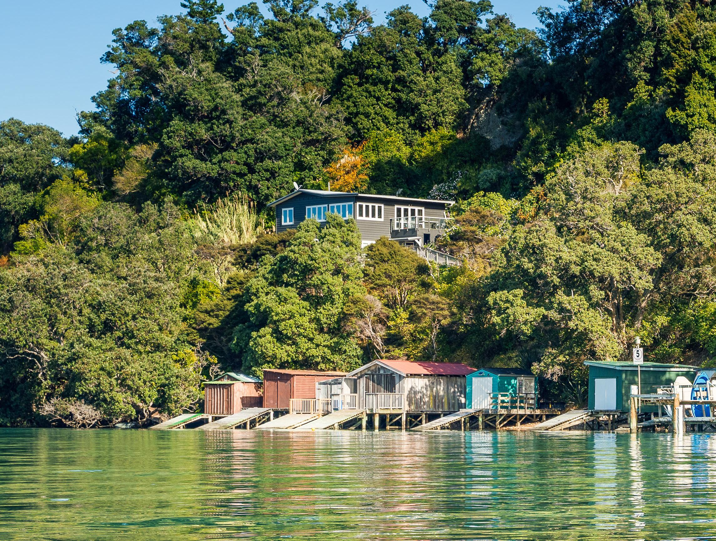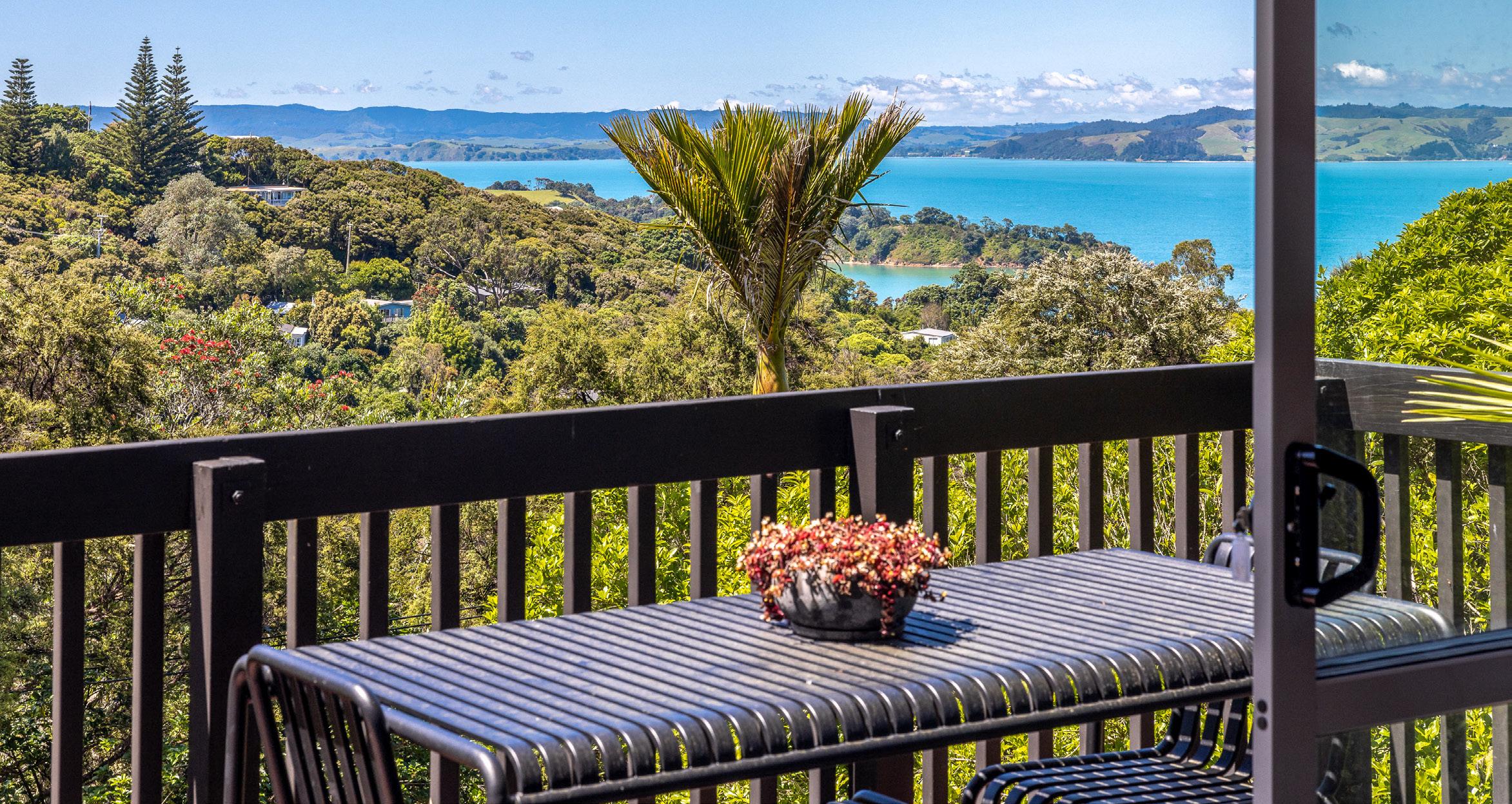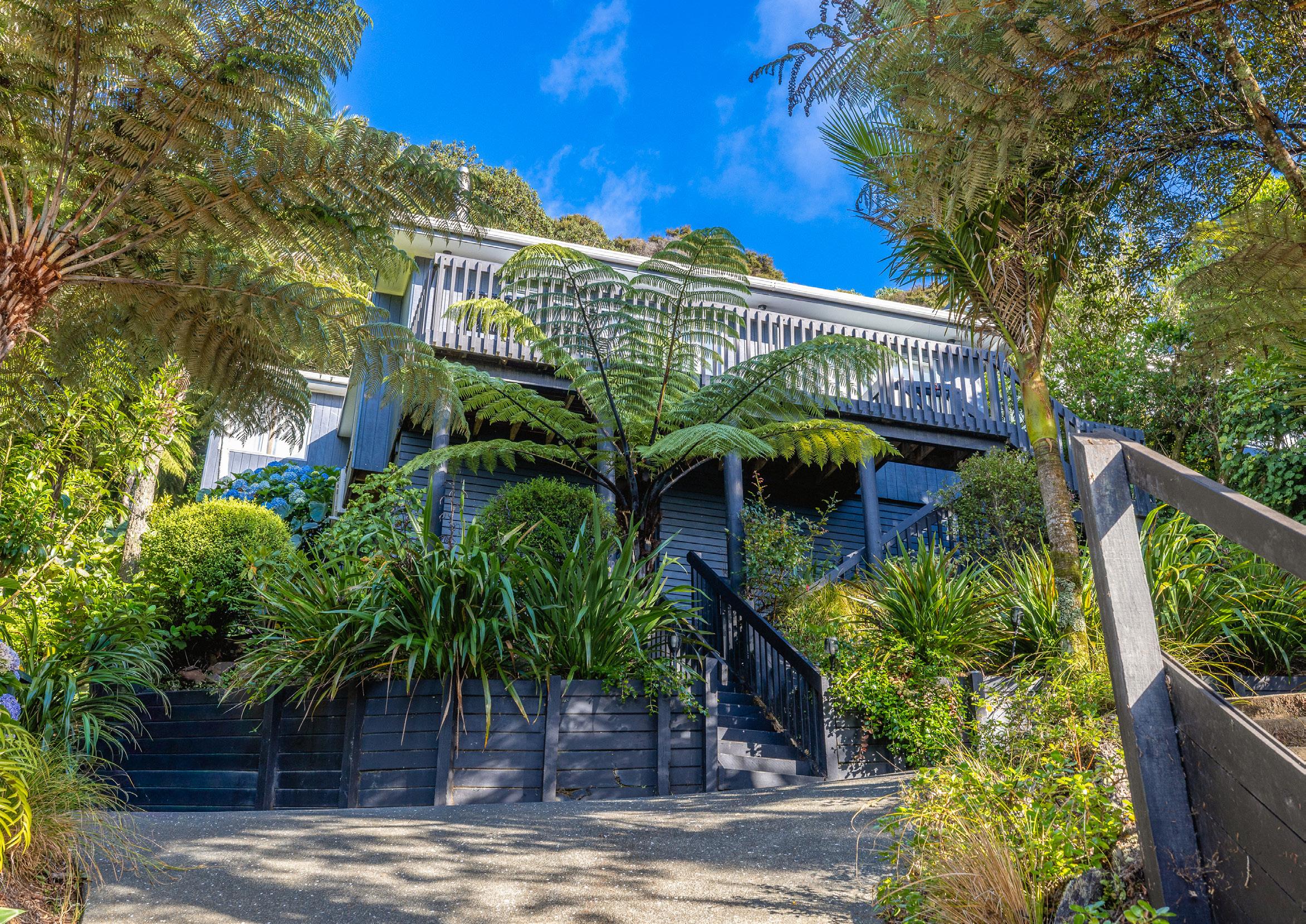 Exquisite far-reaching vistas of mirror-like sea and headland are enjoyed from all the living areas. Elevated above treetops, the cottage has no immediate neighbour on one boundary, while the freshly planted-out site backs onto the Tawa Track, adjoining a gorgeous meander through the Whakanewha Reserve and surrounds. Rocky Bay Hall is nearby, as are Ostend amenities and the crystal waters of the Bay.