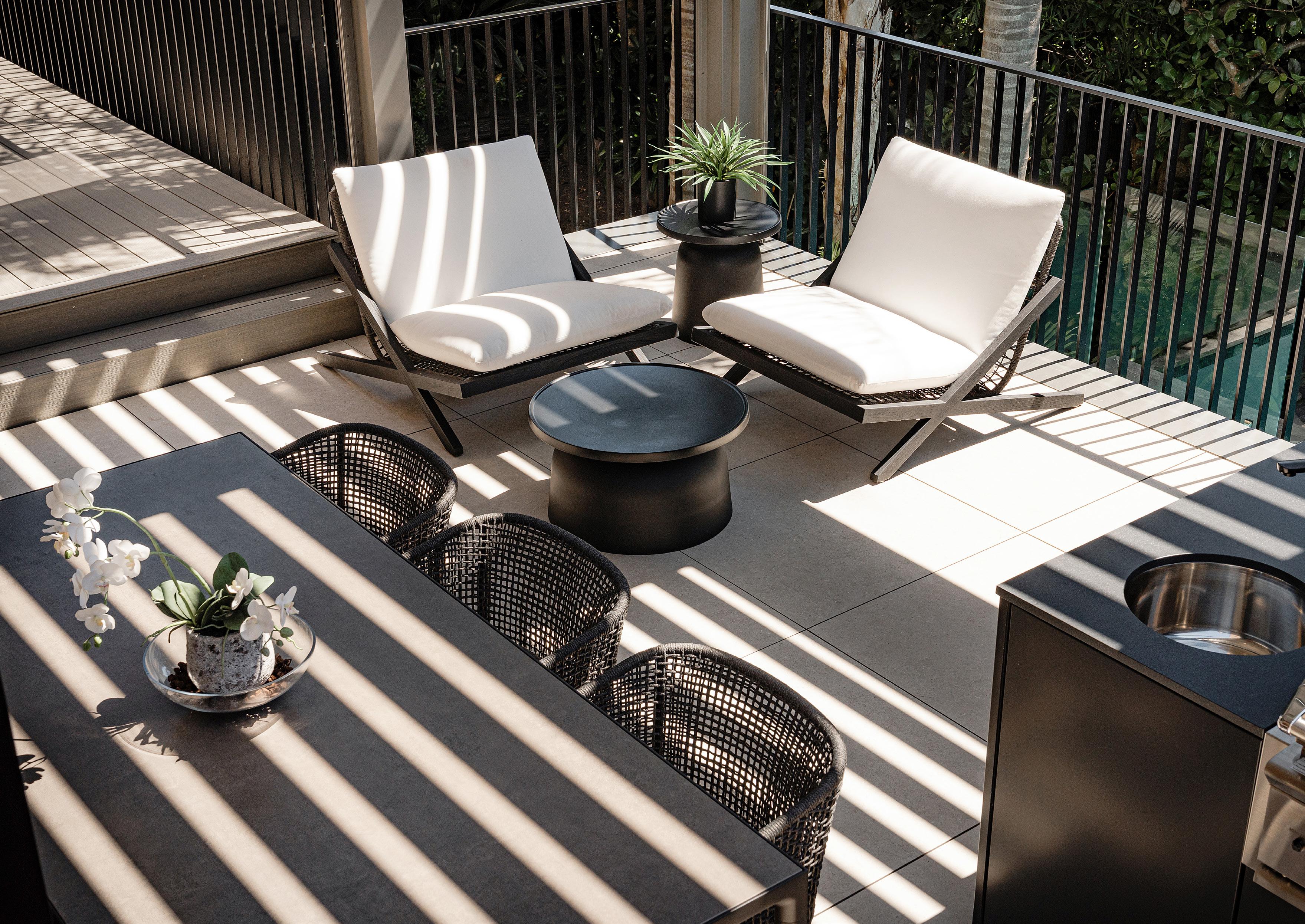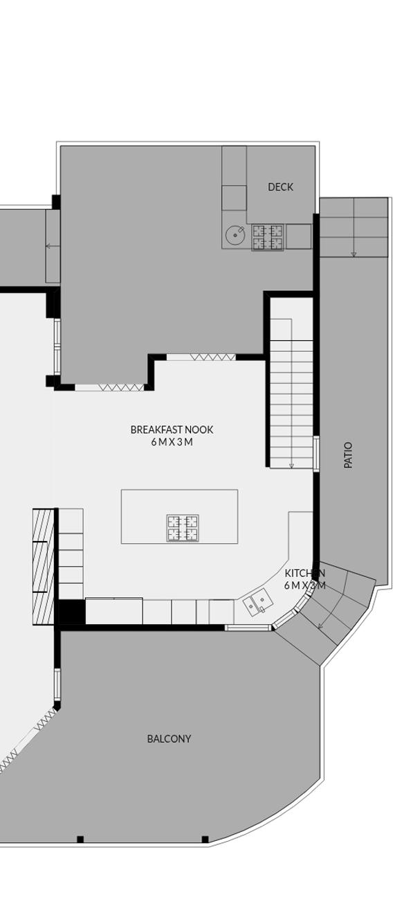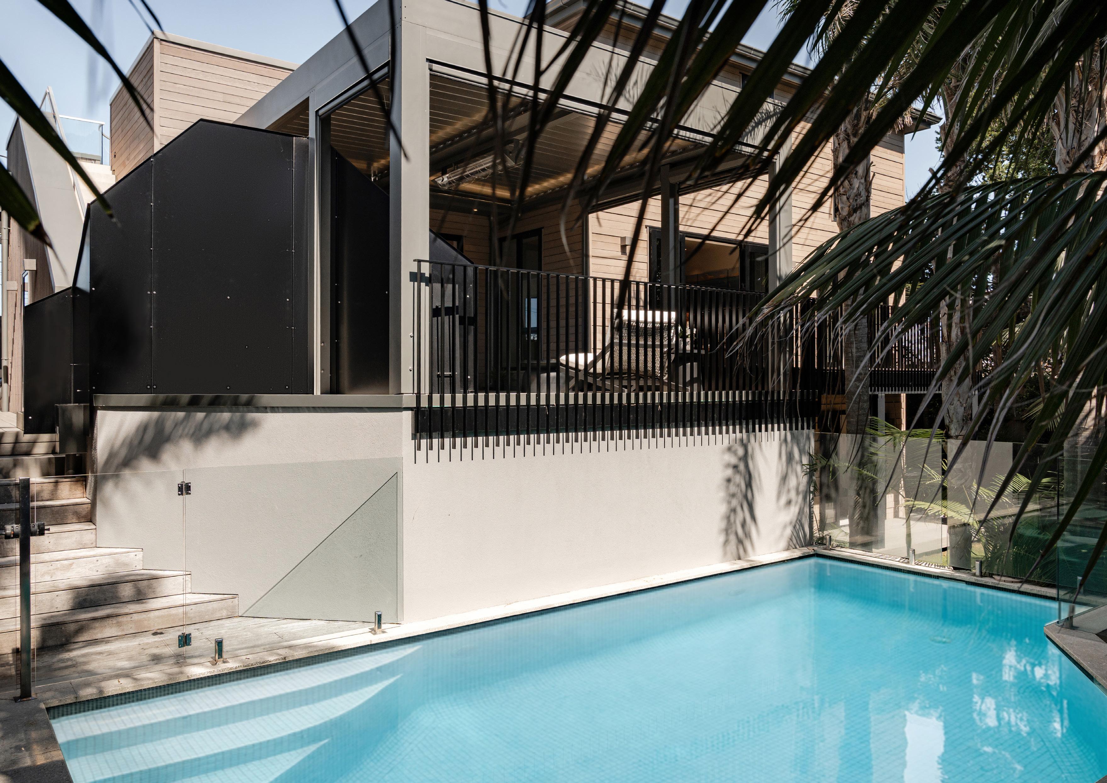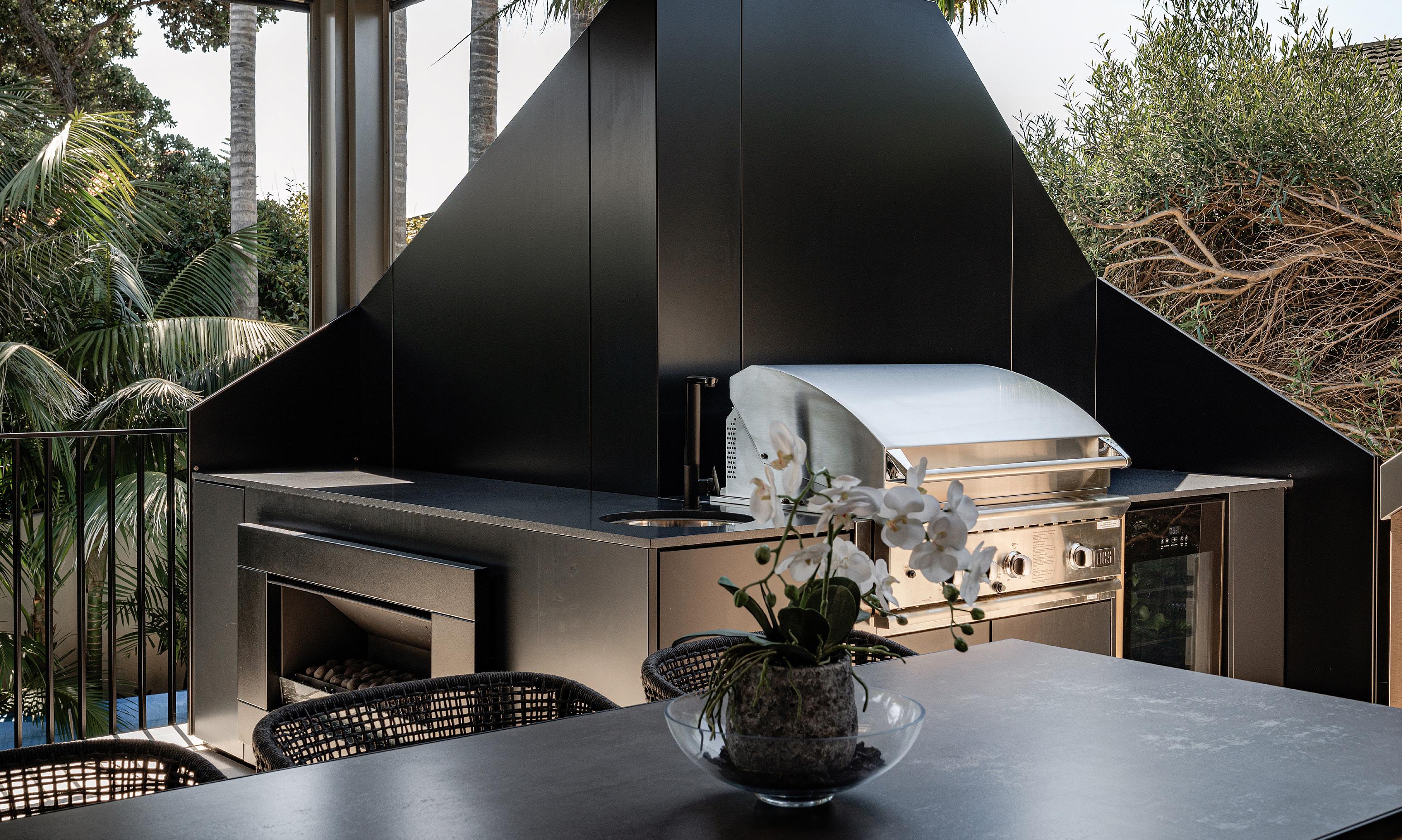 • Afternoon Deck - Outdoor entertaining with Louvretec roof fitted with outdoor heaters, weather curtains, lighting, and surround sound. Custom-designed Blackened steel outdoor kitchen that includes a flueless gas fireplace, sink, fridge, and granite top with automated louvretec roof and weather curtains that ensure privacy and allweather use.