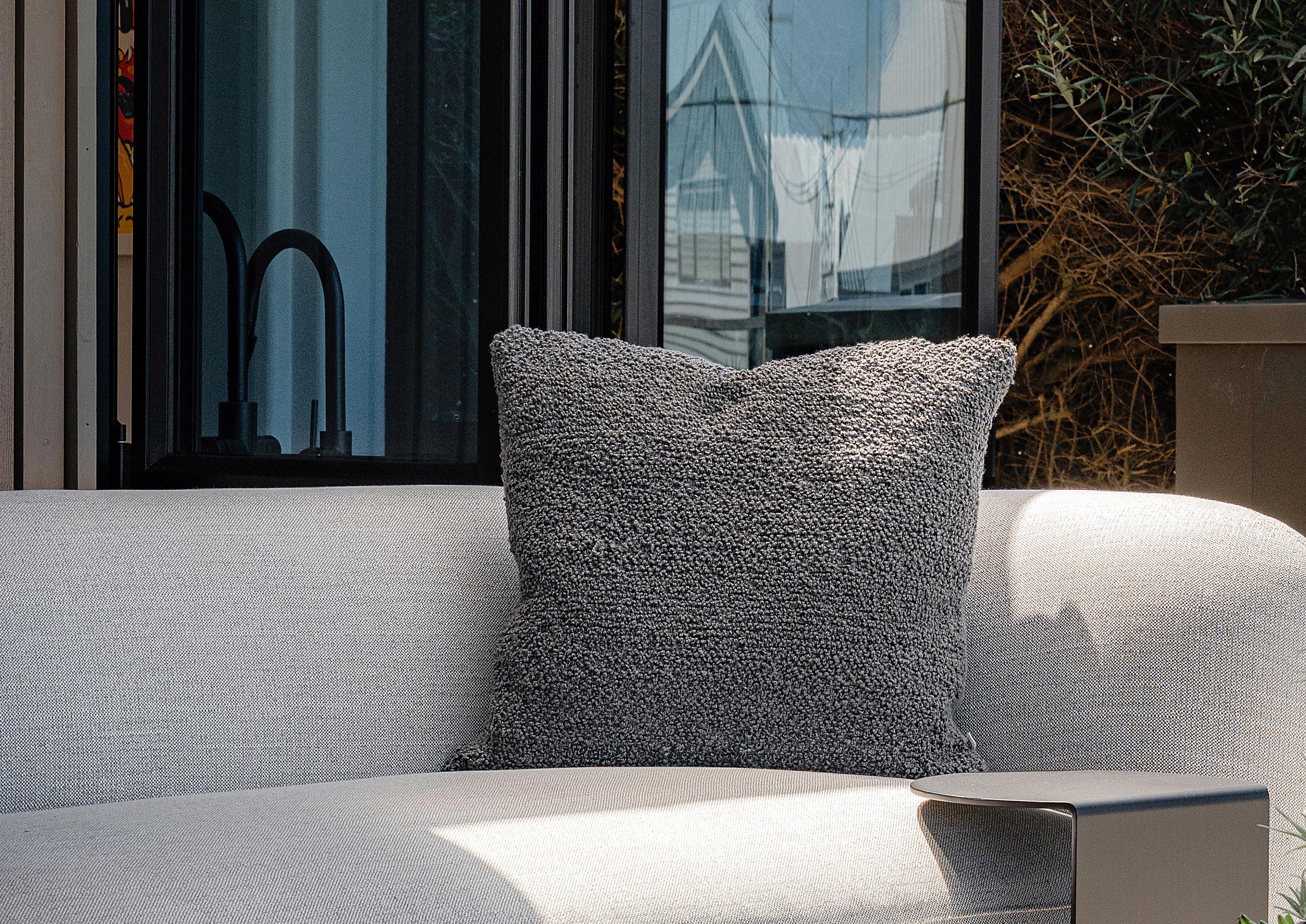 Externally, crafted by Master Builders, the home continues to impress with the Hermpac cedar cladding and cedar soffit detailing all complemented by a custom-designed ColourCote AlumiGard aluminium roof. Architecturally detailed curved rooflines are finished with powder-coated aluminium flashings, cappings, stainless steel brackets, and precision detailing throughout.