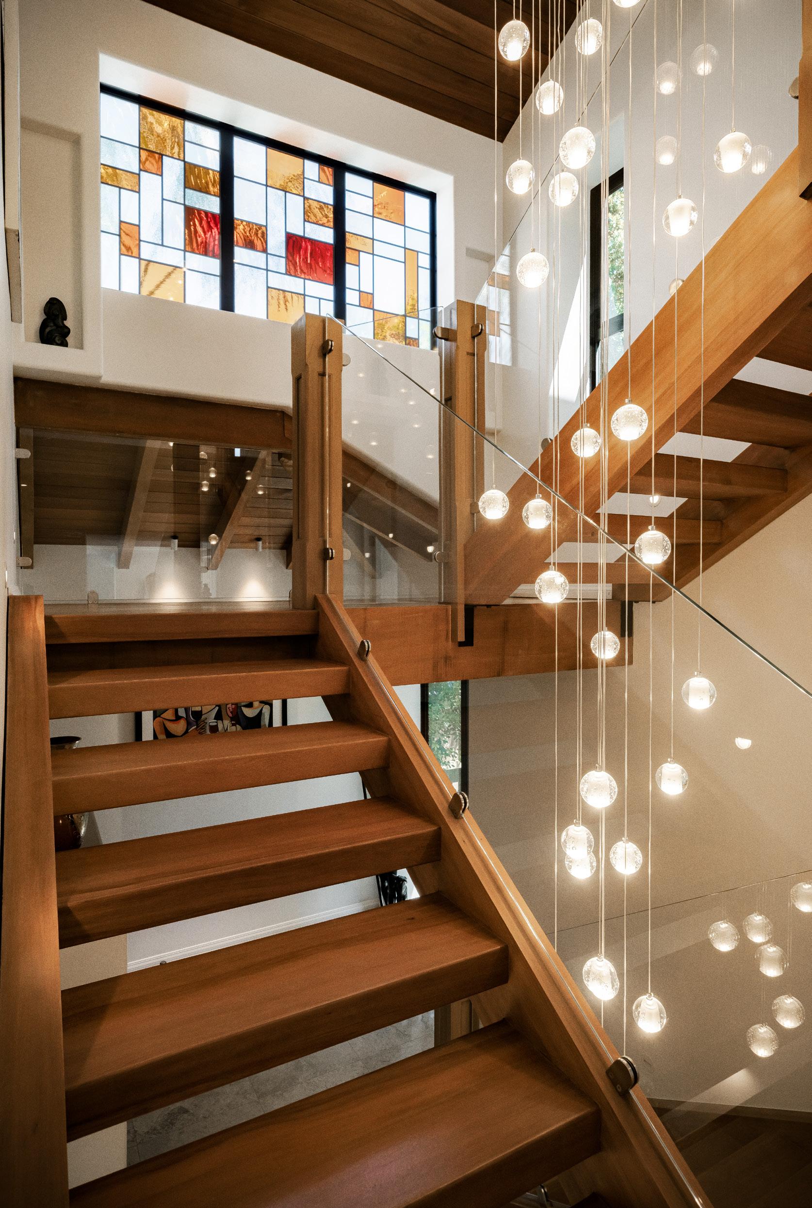 • Italian crystal chandelier balls that fall through the three levels of the kauri staircase.