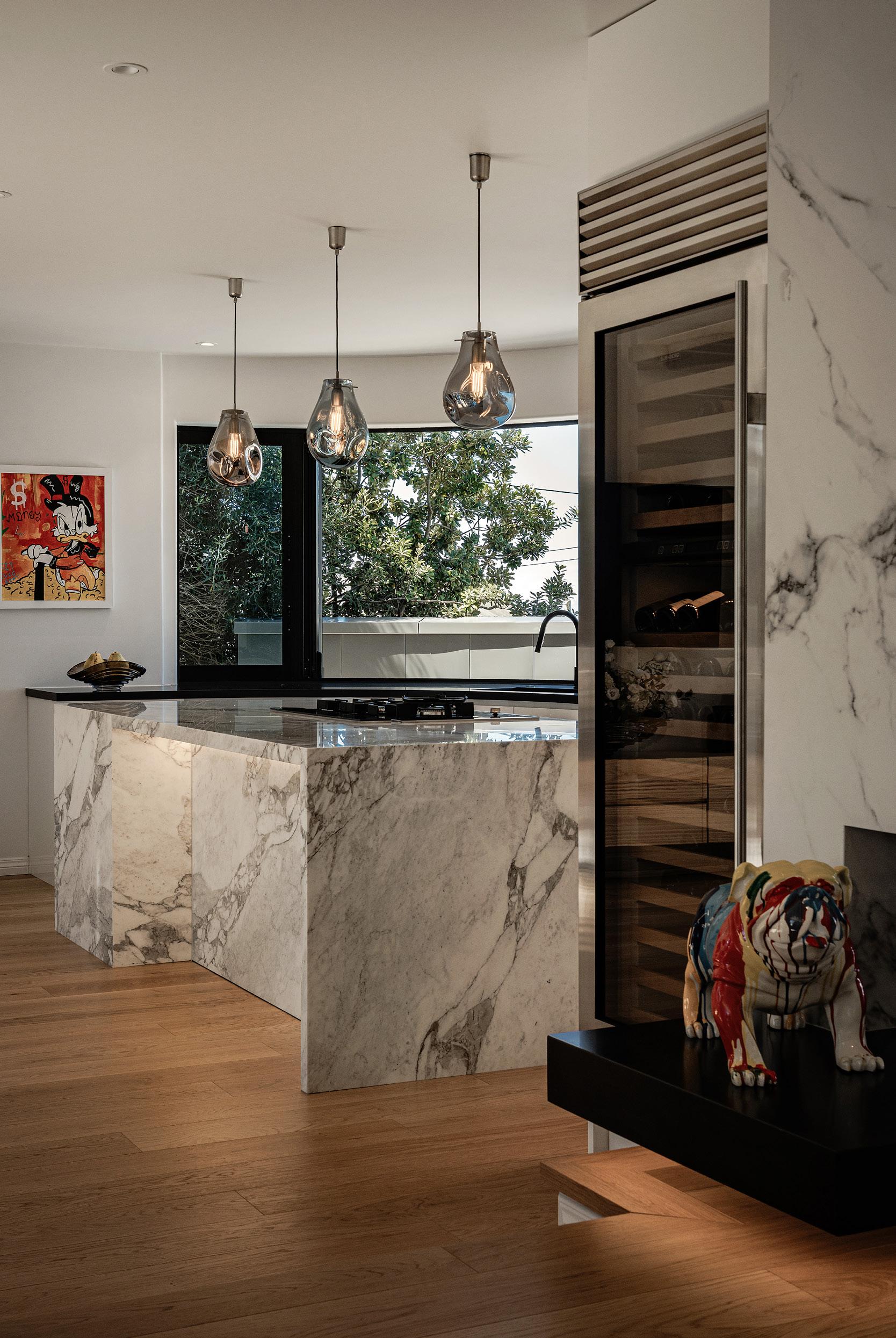 The designer kitchen is a true showpiece, anchored by exquisite Arabascato Vagili marble slabs imported from Italy, setting the tone for both everyday living and refined entertaining. The main living area is enhanced by a gas fireplace, with German oak flooring flowing throughout, grounding the home in warmth and understated luxury.