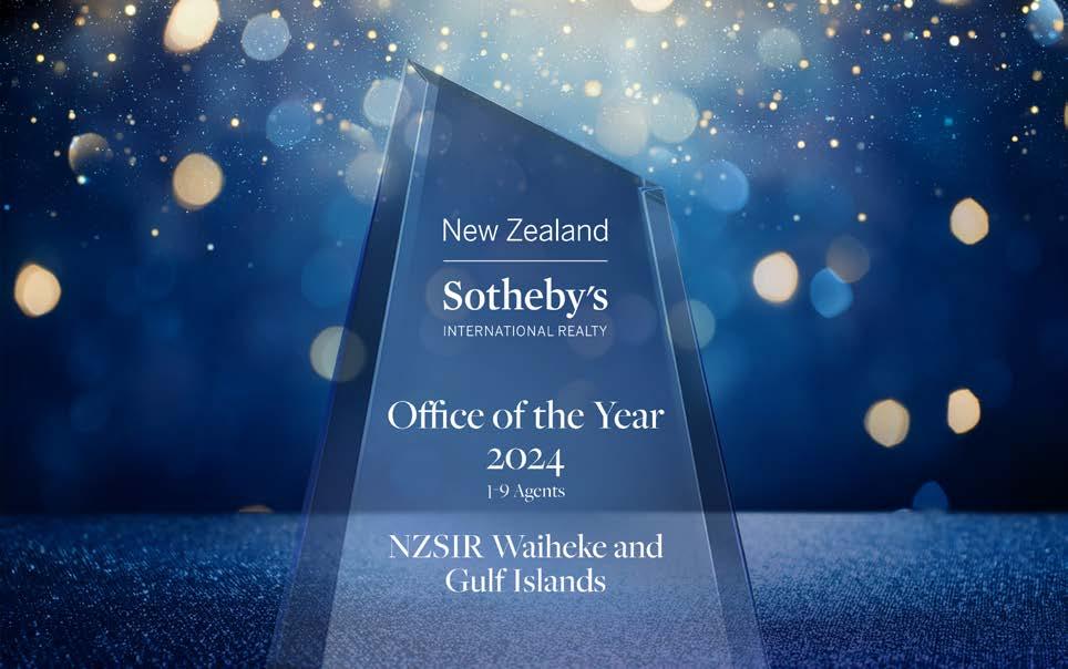 The Waiheke Office are proud to receive the “Office of the Year 2024 (1-9 Agents)’ award at the New Zealand Sotheby’s International Realty National Networking Event in April 2025.