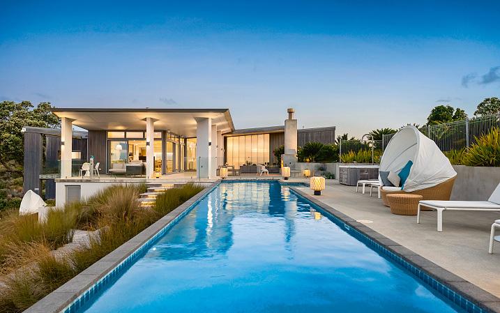 Marino Ridge, an all-encompassing sensory experience that embodies tranquility, soothes and rejuvenates the spirit. The owner’s overriding mandate for both architecture and construction was ‘Be Generous of Spirit and Space’. Elegant, powerful, refined: the mandate has been met, masterfully. Waterfront, inside gated private Matiatia Estate with 360° ridgetop views. Acknowledged and proven as one of New Zealand’s most valuable and tightly held locations. Within 15 minutes directly from Auckland Airport to your helipad or 35 minutes by ferry from Auckland’s CBD and less than 5 minutes from Waiheke’s township of Oneroa and the ferry terminal. So much privacy is rarely as easily accessible. The Hauraki Gulf islands punctuate your horizon. An aquatic playground awaits. Make it your private home, vacation home or continue its continue its legacy as highly accoladed discreet accommodation for discerning international and regional visitors. Guide to price and eBook available on request.