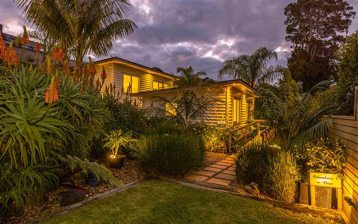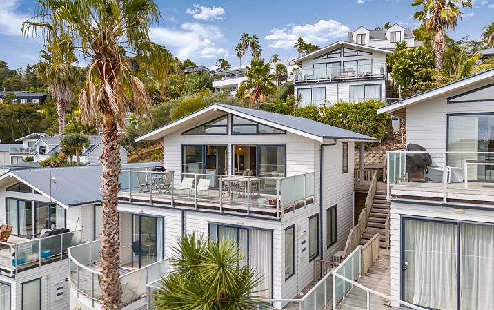 This stunning contemporary abode with two separate, quality visitor units is just a stroll from the ferry, Oneroa village, and nearby vineyards and beaches. The huge house, with two double garages and copious flat parking, enjoys fantastic gulf views to the Coromandel peninsula and over Blackpool Bay. Take the lift or stairs to the massive open-plan living level, with capacious kitchen, butler's pantry and four fabulous decks. There are also three sizeable bedrooms and two bathrooms (one ensuite) up here. Downstairs, there's a bathroom/laundry, gargantuan rumpus zone and a covered guest laundry. The well-appointed, self-contained studios with individual decks sit in the meticulously curated sub-tropical garden, with stunning boardwalk and private pagoda. This is a ready-made, highend, home-and-income opportunity or splendid Waiheke retreat. The property is being sold plus GST (if any).