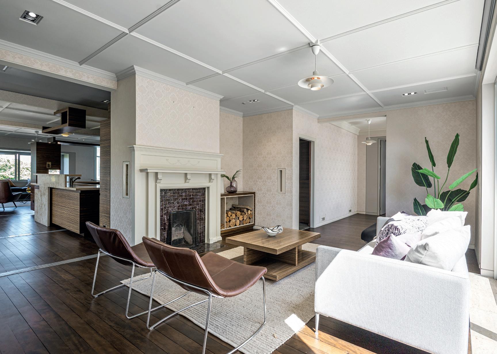 Thanks to Lane, the original heritage design now has a sunny north-facing focus. Ample sitting areas surround a walnut and travertine kitchen overlooking a dining area, flooded with