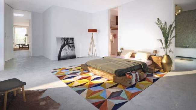 Das offene Schlafzimmer mit Bad erinnert an eine Hotelsuite.