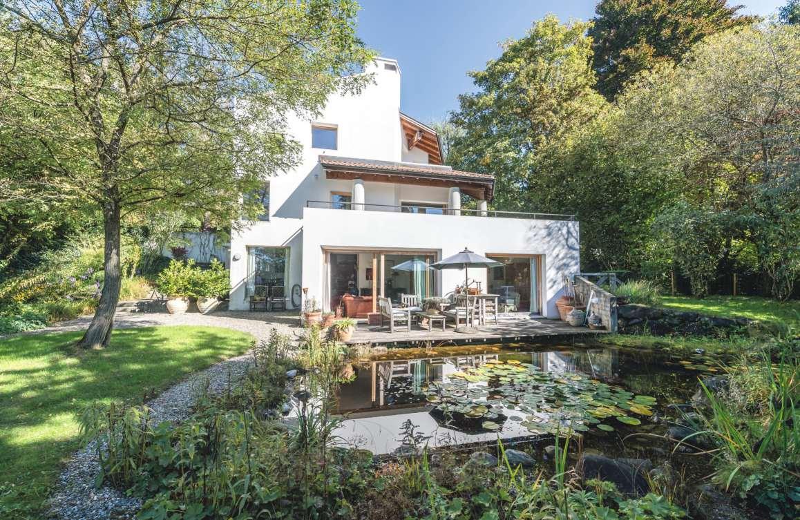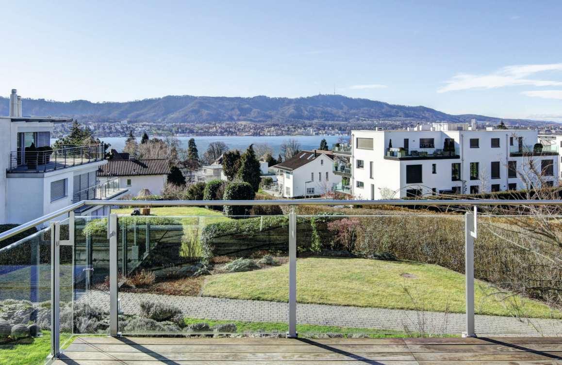 Links: Die Besitzerin geniesst den Blick auf den See und in die Berge von ihrer Gartenwohnung aus.