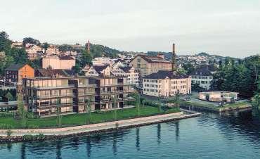 Derzweiteilige Wohnkomplex«Peninsula BeachHouse»ist daserste Projekt, das diebörsenkotierteImmobiliengesellschaft PeachPropertyauf derWädenswiler HalbinselGiessen realisierthat.Die Investoren habenauf demGelände desehemaligen IndustriearealsnochWeiteresinPlanung Sosollenimwestlichen Teil derHalbinsel zwei Neubautenund eininventarisiertes Umbauobjektmit Eigentumswohnungen entstehen.Bei diesemhandeltessichum eindenkmalgeschütztes,1920vom SchweizerArchitekten Albert Köllaerbautes Fabrikgebäude. Insgesamt sollen aufeiner Entwicklungsfläche von9300m259Wohneinheitenunterschiedlicher Grösse sowie Gewerbeflächen entstehen,davon 27 im «Aquatica»-Gebäude,4imHaus«Kölla», 9im«Mansion» und18im«Dockside». Drei Objekte liegen direkt am See. DieVermarktung derhochpreisigen Wohnungen gestaltetsichfür denInvestor bisjetzt nicht einfach.Einzelne Appartements im «Beach House» sind immernochauf demMarkt � www.beach-house.ch