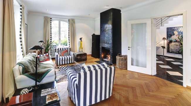 AproposBewegung–wie steht es um dieNutzung des Wellness- und Fitnesstrakts, zu demsie über eine Tür im Wohnungsflur direkten Zutritt haben? Ausgestattetist der400 Quadratmeter grosse Spamit einem20-MeterIndoorpool, einemRelaxbad, einerSauna, einemFitnessraumund einerSquashHalle. «Die Hallenutzenwir nicht, aber an denFitnessgeräten trainieren wir regelmässig.Inder kalten Jahreszeit gehenwir gerneindie Saunaund das warmeRelaxbad»,erzählt sie. «Vor dem Schlafengehentauchenwir immerkurz in denPoolein.AberkeinnochsoschönerPoolkanndas SchwimmenimSee ersetzen.» MajaFueter