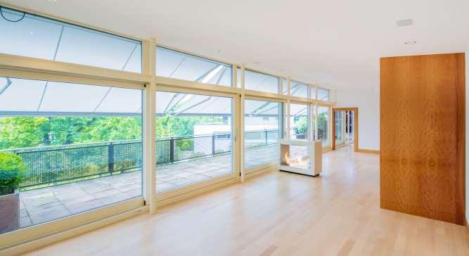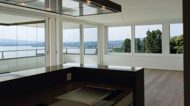 Die rahmenlosen Schiebefensterdes Schweizer Herstellers Sky-Frame gehen schwellenlos in ihreUmgebung über.Innenräume verwandeln sich so zu Aussenräumen und ermöglichen eine einzigartige Wohnatmosphäre. SKY-FRAME.CH