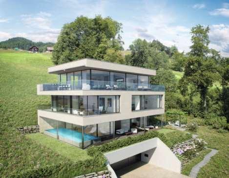 Dasgrosszügige, dreigeschossige Haus wurde2011erstelltund kann als beinaheneuwertigbezeichnet werden. Es istmoderndesignt undhochwertig ausgebaut. DieRäume sind sehr hell undoffengestaltet,und diegrossen Fenstertransportierendie fantastischeWeitsicht bisindie hinterstenWinkel des Hauses.Der optimalnachSüdwesten ausgerichteteSonnen-Gartensitzplatz undder wohnlich temperierteWintergartenwerdenimSommerund denZwischenmonatenzum Highlight derLiegenschaft.