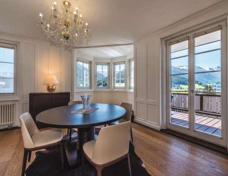 Es istnicht übertrieben, dieseWohnung alseineder eindrücklichsten und aussergewöhnlichsten Eigentumswohnungen in Davoszubezeichnen.Nebst der herausragenden Lage undder attraktiven und geschichtsträchtigenArchitektur weissauchder raffinierteInnenausbau durchein ausgewogenesZusammenspiel vonneuwertigen Einbautenund historischenDetails zu überzeugen.Eswird modernes undkomfortables Wohnen in einem geschichtsträchtigenGebäude geboten.