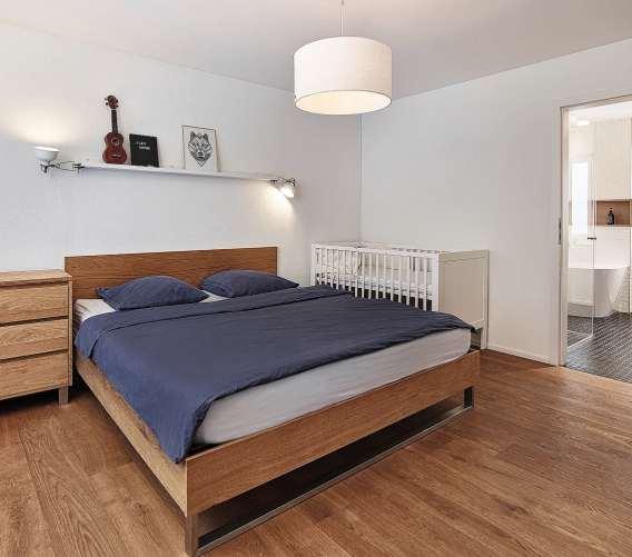– EG: 164 m² Fläche über 2 Etagen aufgeteilt (4½-Zimmer-Wohnung) mit 3 Schlafzimmern und 3 Duschen/WC.