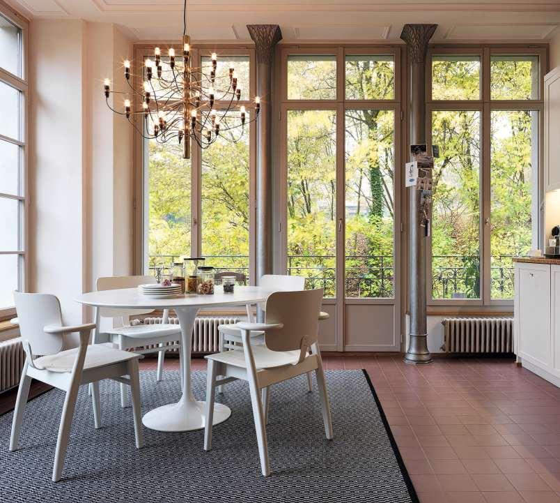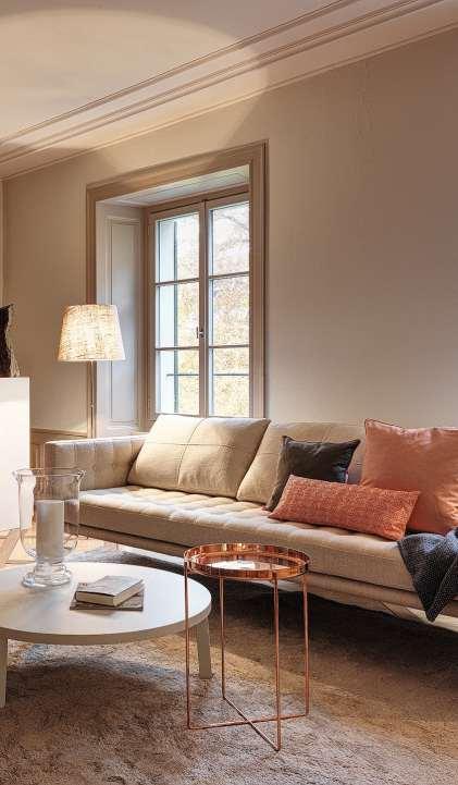 Waren in einem solchen Gebäude moderne Elemente von vornherein ausgeschlossen? «Im Gegenteil!», sagt die Innenarchitektin,«manbrauchtsiesogar,damitmansich am Ende nicht wie in einem Museum fühlt.» Trotzdem sei es eine Herausforderung gewesen, die Wohnungen so zu gestalten, dass sie wohnlich und nutzbar sind, ohnedenCharakterunddievielenarchitektonischen Details zu zerstören.
