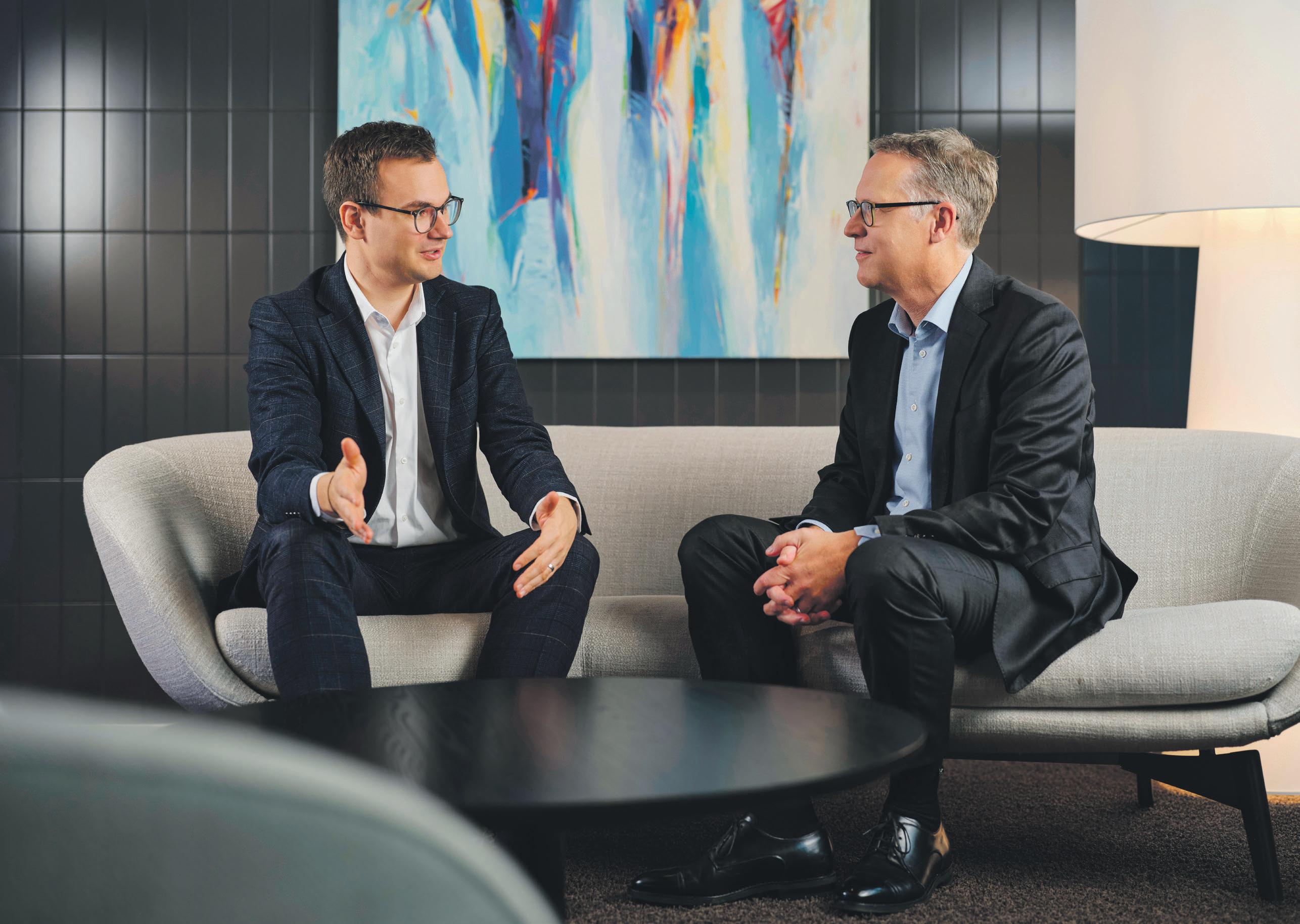 Zwei der Transformationsexperten von KPMG Schweiz: Karolis Jankus (links), Partner Risk, Controls & Internal Audit, und Matthias Bossardt, Partner und Leiter Risk Consulting. GEERTJAN VAN BEUSEKOM KPMG Schweiz