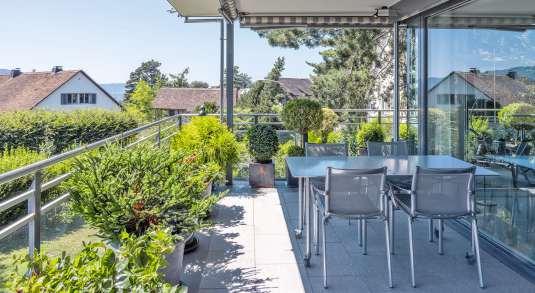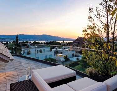 Luxuriöses Interieur und Wohlfühlatmosphäre vereinen sich hier in formvollendeter Art und Weise. Dieses beeindruckende Refugium wurde mit viel Liebe zum Detail designt. Hochwertige Designermöbel und eine geradlinige Architektur prägen das Gesamtbild dieses besonderen Objektes Zu jeder Jahreszeit verspricht die eindrucksvolle Sonnenterrasse mit privatem Whirlpool sonnige Stunden und eine spektakuläre Panoramasicht. Der Wohnbereich erstreckt sich über drei Etagen, wobei zwei davon mit dem Lift direkt zugänglich sind. Das Prunkstück bildet der imposante Wohnbereich mit Cheminée und 360° Aussicht in der Turmspitze. Insgesamt vier Schlafzimmer, fünf Badezimmer sowie ein Gäste-WC stehen dem Mieter zur Verfügung. Die Liegenschaft ist ab sofort zur langfristigen Miete verfügbar