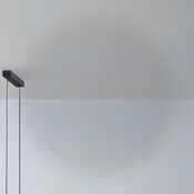 Durch den metallischen Farbauftrag wird am Tag das Sonnenlicht und am Abend das Kunstlicht der drei Lampenkörper an den eingebauten Möbeln unterschiedlich reflektiert. Ein grosser silbrig-schimmernder Vorhang bietet Sichtschutz. Die kühlen Farbtöne ergänzen Rosé-, Grau- und Rottöne in den Fronten der Einbauten. Die Küche steht frei im Raum, eine schwenkbare schwarze Metallleuchte bringt Licht über Kochfeld und Küchentheke sowie über den Esstisch. Aus schwarzem Metall ist auch die Bücherleiter gefertigt, die selbst die obersten Bücher des in den Dachspitz gebauten Regals zugänglich macht. Der kleine Balkon kragt in den Innenhof aus – man wohnt buchstäblich in einer Dachlandschaft.