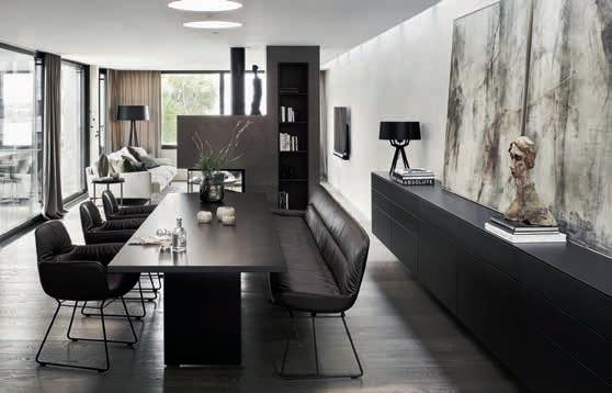 Einen Diwan für das 21 Jahrhunder t zu schaf fen, schwebte den De signern von Jehs + L aub vor, als sie Mos s ent wickelten – ein S of a, das einen mit seinen daunengefüt ter ten Kissen re gelrecht umschling t Dabei sorgen mit Handwerk skuns t gefer tig te Det ails – wie der Spalt z wischen Rücken- und Armlehne oder die umlaufende Paspel – dafür, dass selbs t herrlichs tes Herumlümmeln sich anfühlt wie Hochkultur