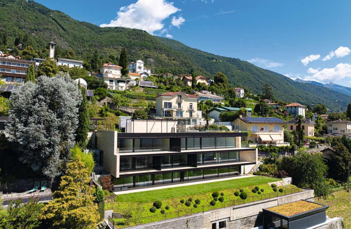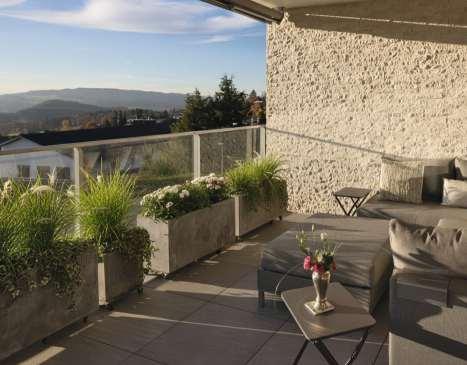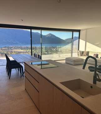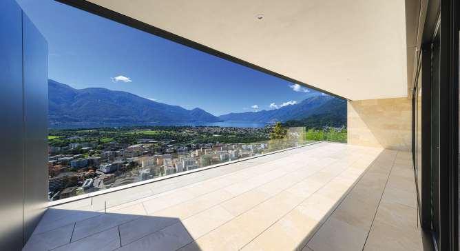 Die hochwertige Attika-Wohnung bietet vonihrer teils gedeckten Terrasse, einen herrlichenAusblick auf den LagoMaggioreund die umliegende Berge.