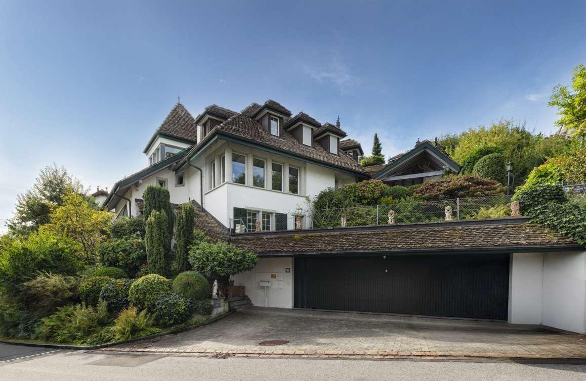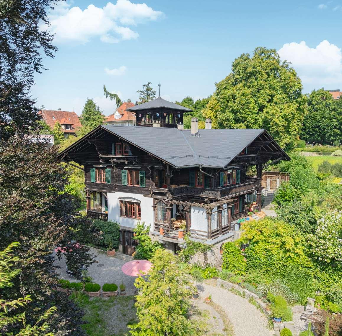 Die denkmalgeschützte Villa «Belle Époque» von1900 im Chalet-Stil liegtim privilegierten Villenquartier vonBurgdorf nahe der Altstadt. Aufwendigrenoviert, verbindet sie historische Ausstattung wieWand- und Deckenmalereien, Parkett, Cheminée undmehrereKachelöfen mit moderner Haustechnik und Lift. Der parkartige Garten mit Altbaumbestand mit der Glas-Remise fürAutos und Orangerie garantiert Privatsphäre. Die grosszügigen, flexibel nutzbaren Räume eignensich ideal für Familien, Mehrgenerationenwohnen oder repräsentative Geschäfts- und Wohnnutzungen.Burgdorf bietet hohe Lebensqualität, Kultur, Natur und beste Verkehrsverbindungen.