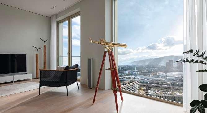 Im 23. Obergeschoss des renommierten Mobimo Towers präsentiert sich eine aussergewöhnliche 4½-Zimmer-Penthousewohnung, die urbanes Wohnen auf höchstem Niveau verkörpert. Auf ca. 296 m²Nutzfläche entfaltet sich ein grosszügiges Raumkonzept mit beeindruckenden Raumhöhen, weitläufigen Fensterfrontenund einermodernen, offenen Architektur Die erhöhte Lage bietet eine spektakuläreWeitsicht über Zürich bis hin zu den Alpen und schafft tagsüber wie abends eine einzigartige Atmosphäre. Eingebettet im dynamischen Zürich-West profitieren Bewohner voneiner ausgezeichneten Infrastruktur, erstklassiger Anbindung und einem Umfeld aus moderner Architektur,Kultur und urbanem Lifestyle.