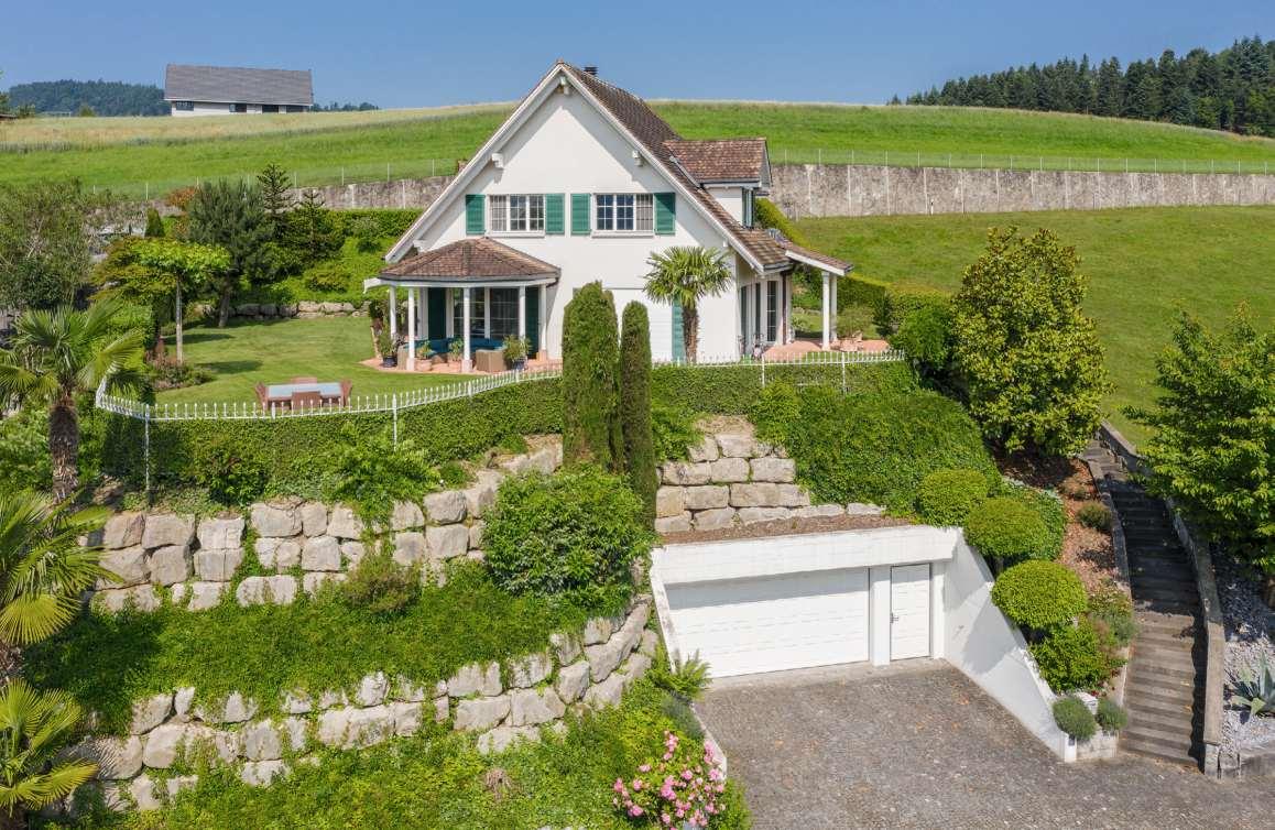 Mit wertigen Materialien ausgebaute, stimmige, 236m²grosse 6½-Zimmer-Villa in unverwechselbarer Architektur.Die Liegenschaft besticht mit einer wunderbaren, erhöhten Wohnlage in der beliebten Wohn- und Weinbaugemeinde SchinznachDorf.Dieses Zuhause in nächster Nähe der Gemeindeinfrastruktur ist der perfekte Rückzugs- und Erholungssort für Workaholics und Menschen, die mitihren Kindern in einer natürlichen Umgebung leben wollen. Ein interner Lift sowie modernste Haustechnik verwöhnen im Alltag,während der vielseitigeGarten mitbeheizbarer Poolanlage, Koi-Teich und verschiedenen Sitzplätzen das Ensemble zu einem einzigartigen Daheim machen. Eine zusätzliche Gartenparzelle mitTeehaus und Garagengebäude für Ihreautomobilen Schätze kann dazu erworben werden.