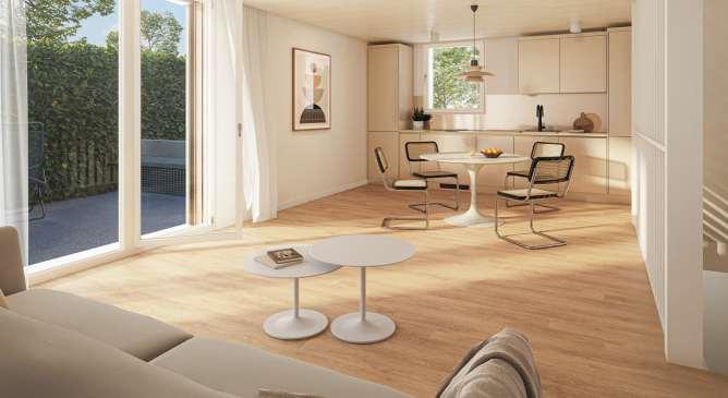 In diesem exklusiven Neubauprojekt, das moderne Architektur mitnachhaltiger Bauweise verbindet, entstehteine 3½-Zimmer-Gartenwohnung, die höchsten Wohnkomfort bietet. DieWohnung überzeugt mit rund 140 m² grosszügiger Wohnfläche,einer Loggia und einem gepflegten Gartensitzplatz mit weitläufiger Gartenfläche vonca. 90 m². Zwei Schlafzimmer mitangrenzenden Ankleiden sowie ein zusätzlicher Keller schaffen viel Stauraum und flexible Nutzungsmöglichkeiten. Der helle Wohn- und Essbereich mit direktem Zugang über die Loggia in den Garten sorgt für eine einladende Atmosphäre. Hochwertige Bauqualität, moderne Architektur und die naturnahe Ausrichtung verleihen dieser Wohnung einaussergewöhnliches Wohngefühl. Die Fertigstellung ist für den Frühling 2027 geplant.