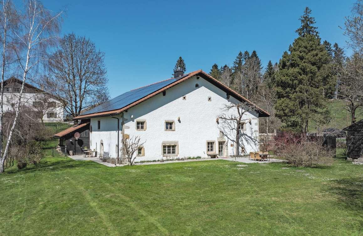 Dieses grosszügige Landhaus bei Saignelégier (JU) ist Teil eines kleinen, charmanten Weilersund geniesst Aussicht auf schier unendliche Weiden und Wälder Rundum besonnt und nebelfrei bietet es ganzjährig Ruhe und Zuflucht vorder Hektikdes Stadtlebens.