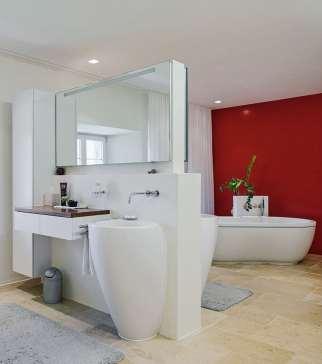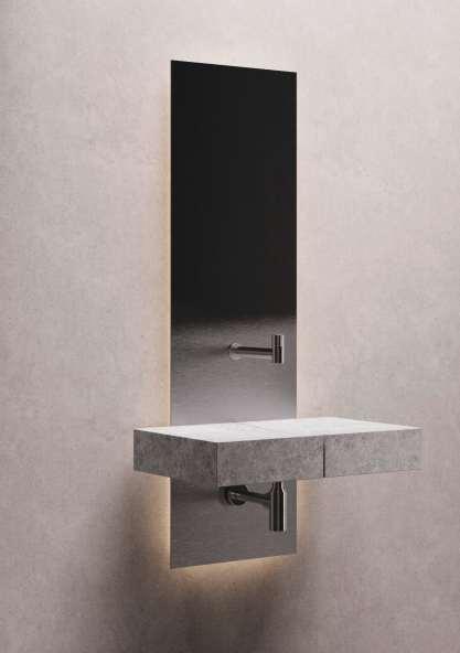 Jenseits von gängigen Badezimmer-Standards, dafür avantgardistisch, elegant und dennoch funktional sind die Bad-Designs der deutschen MarkeVallone.Derneuste Wurf,dieKollektion«Atelier», bestichtmitambivalenten Statements Provokativund beruhigendineinemistdie KombivonMarmorwaschtisch undSpiegel,dessenOberfläche fliessendvonunscharfgebürstet bisklarverläuft. vallone.de