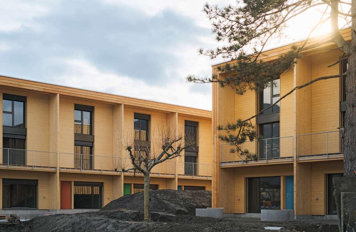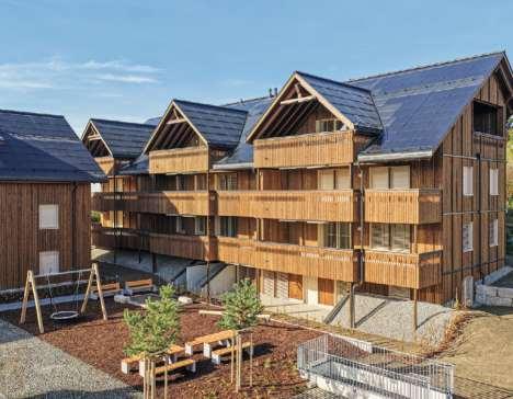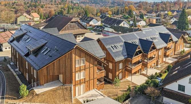 Der «Tannerhof» fügt sichharmonisch in die dörfliche Struktur ein. Ein zentraler Platz dient als Treffpunkt fürdie Bewohner der zwei Mehrfamilienhäuser. Die Wohnungensind je nach Ausrichtung mit unterschiedlichen Grundrissen gestaltet und verfügen über grosszügige Balkone und Sitzplätze. Die Architektur kombiniert moderne Elemente wie eine besondereHolzverkleidung und grosse Fenster mit dem traditionellen Dorfcharakter.Natürliche Materialien und dezente Farbtöne verstärken den ländlichen Charme. Diesorgfältiggestaltete Umgebung mit einheimischen Pflanzen verleiht dem «Tannerhof» eine elegante und beruhigende Atmosphäre. www.tannerhof-birrhard.ch