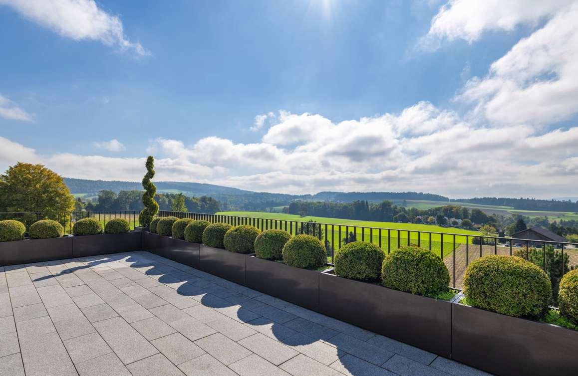 Zumikon zählt zu den begehrtesten Wohnadressen im Kanton Zürich und vereint Natur und Stadtnähe auf ideale Weise. Die gepflegte 5½-Zimmer-Attikawohnung mit rund 170m²Wohnfläche befindet sichin zentraler Lage mit freiem Blick auf Felder und Wälder Grosszügige, lichtdurchflutete Räume, ein elegantes Gas-Cheminée und der direkte Liftzugang schaffen ein exklusives Wohngefühl. Zwei weitläufige Terrassen mit Ausrichtung nach Süden und Norden erweitern den Lebensraum ins Freie und bieten maximale Privatsphäre sowie Weitsicht bis indie Alpen. Die Wohnung ist barrierefrei gestaltet und eignet sich ideal fürjedes Alter.Das Angebot wirddurch zwei Garagenplätze, eine Waschküche und zwei Kellerräume abgerundet.