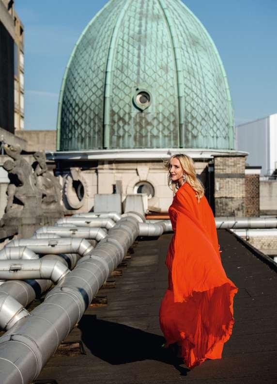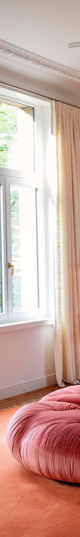 Die Küche und der Wohnbereich, in lebhaften Grüntönen und elegantem Stahl, befinden sich etwa ungewöhnlicherweise oberhalb der Privatgemächer, des ganz in Rosatönen gehaltenen Schlaf-, Ankleideund Badzimmers. Dieses Antwerpener ApartmentistnichteinfacheineWohnung. Es ist Ausdruck eines Weltbilds einer schillerndenPersönlichkeitnamensIngeOnsea. 1999 gründete die Belgierin – nach Stationen als Backgroundsängerin, ZauberassistentinundShowroom-ModelfürMaxMara undThierryMugler–mitihremdamaligen Ehemann Esfan Eghtessadi das Modelabel Essentiel Antwerp. Als Kreativdirektorin prägtdie55-JährigenochheutedessenKreationen: Aufregend ist der Stilmix aus Farben, Prints und Proportionen – ein Ethos, das nun auch in ihrem privaten Daheim zum Ausdruck kommt.