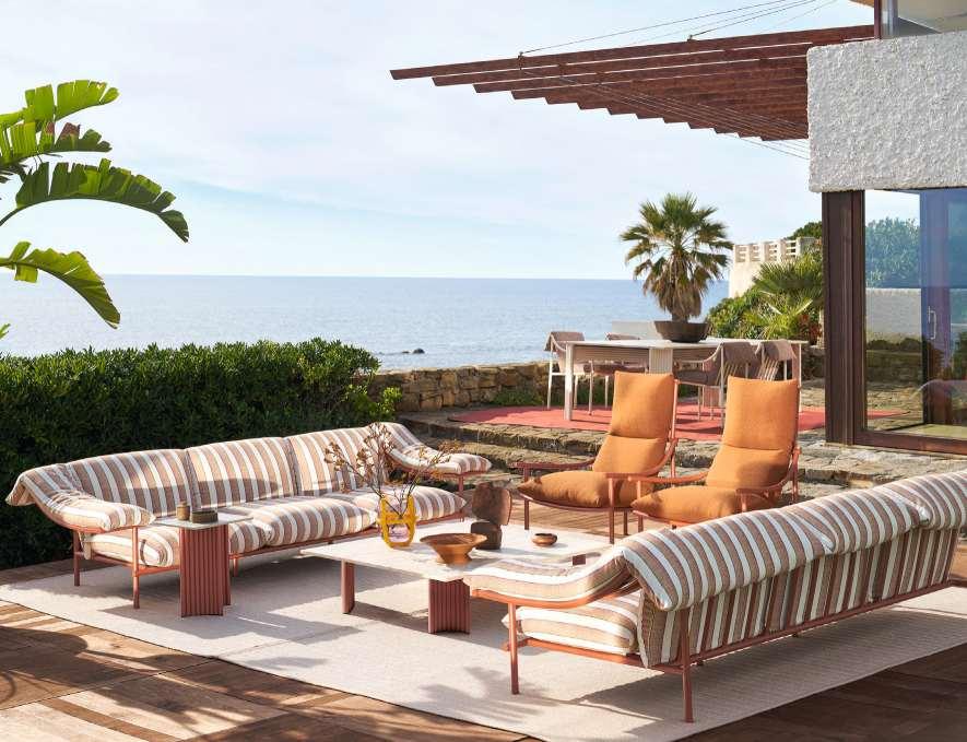 Unter dem Motto «Oasis of Now» zeigt Cassina Ideen für den Rückzugsort voller Ruhe, Komfort und zeitloser Eleganz. Ein sanftes Flair der 1960er Jahre, minimal und doch mondän, hat Patricia Urquiolas Linie «Vidalenta»: Klare Metallgestänge tragen ausladende, weiche Polster – ein vielseitiges Programm für ungezwungene Momente, ob mit Müesli oder Negroni, auf Terrasse und Balkonien. cassina.com