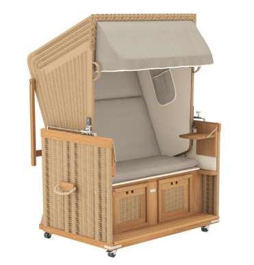 Kurios sind sie, diese kastigen Ungetümer, doch irgendwie auch von einer nostalgisch anmutenden Gemütlichkeit: Strandkörbe. Windschützend, schattenspendend und komfortabel ist etwa die neue Edelversion von Garpa. Dank Rollen lässt sich die Sichtraschverändern,währendausziehbare Fusskästen und eine kippbare Rückenlehne das Sitzmöbel in eine Doppelliege fürs Sonnenbad verwandeln. garpa.ch