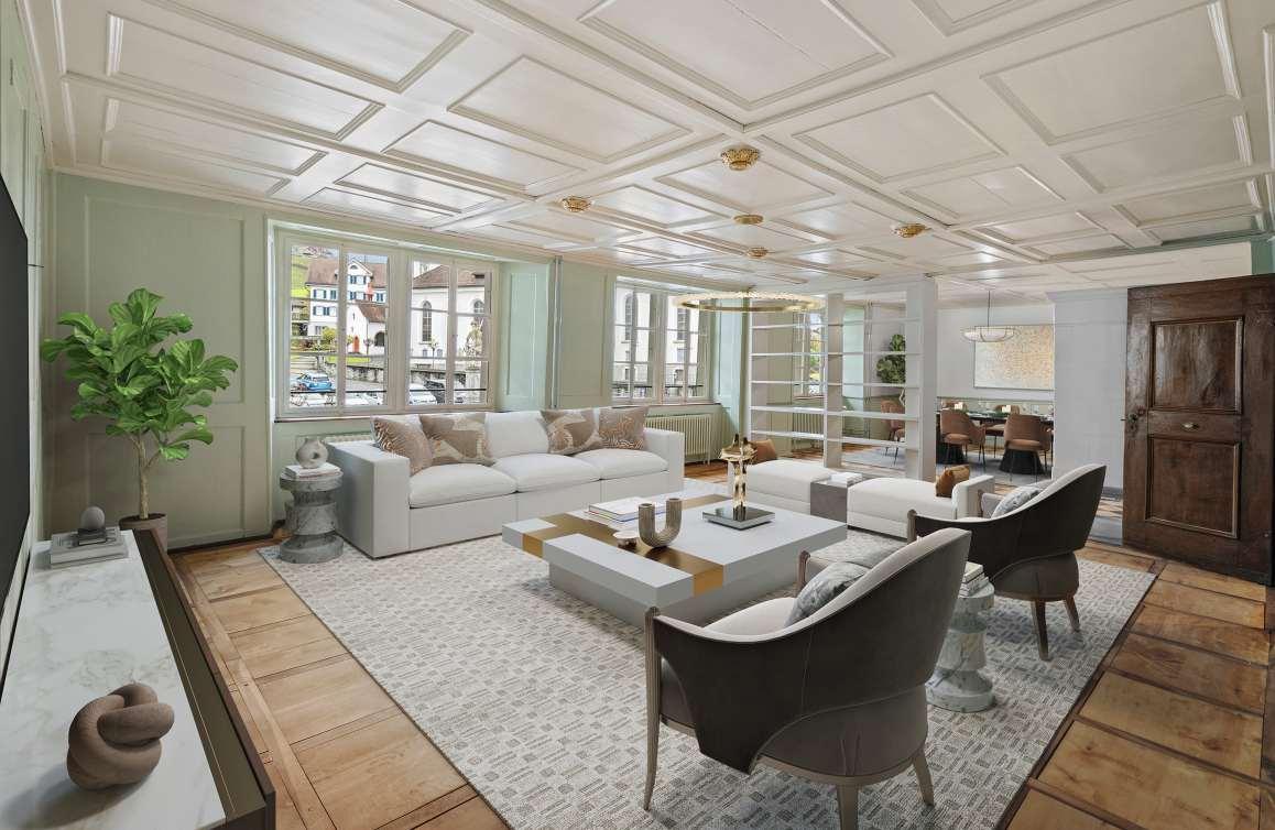 Diese erneuerte 6½-Zimmer-TriplexeinheitamStanser Dorfplatz richtet sich an Menschenmit Sinn für Geschichte, Architektur und zeitlose Qualität. Im denkmalgeschützten Haus, dem letztenerhaltenen Zeitzeugen des Wiederaufbaus nach dem Dorfbrand von1713, vereinen sich Originalsubstanz undzeitgemässe Nutzung auf rund 288 m² über drei Ebenen. Das erste Obergeschoss bildet mit grosszügigem Salon, markantemKachelofen, offener moderner Küche und atmosphärischer Bibliothek das repräsentativeZentrum. Die oberen Etagen bieten flexibel nutzbareRäume für exklusives Wohnen, Ateliers, Ausstellungen oder eine stilvolle Kanzleinutzung. Klare Strukturen, traditionelle Details unddie exponierte Lage im historischen Kern vonStans verleihen der Liegenschaft ihren unverwechselbaren, exklusiven Charakter