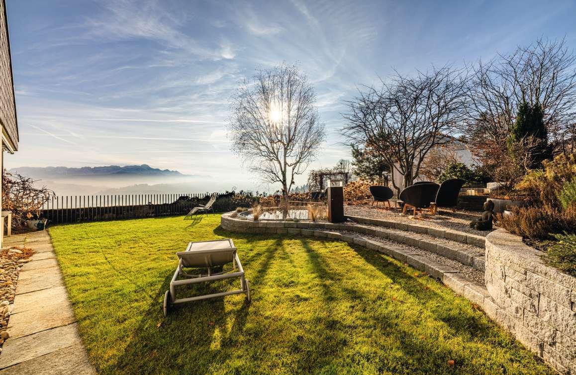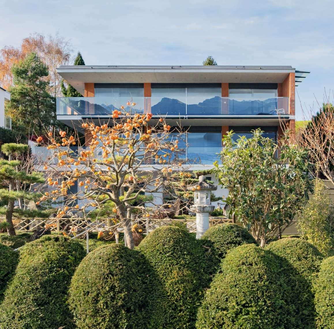 Die zeitlose Architektenvilla«ZEN Serenity» begeistert auf verschiedenen Ebenen. Die lichtdurchfluteten, grosszügigen Stockwerkemit raumhohen Fensterfronten verbinden Innen- und Aussenraumund bieten eine traumhafte Sicht aufSee und Berge. Die moderne, gradlinige Architektur wirddurch den klassisch-modernen Innenausbau ergänzt, während die gepflegte, japanisch anmutende Gartenanlage das Anwesen harmonischumschliesst. Dank der Lage an einer Sackgasseinder beliebten Luzerner Gemeinde Weggis ist die Privatsphärevollumfänglich gewährleistet. Die praktische Doppelgarage, vier Aussenparkplätze und modernste Haustechnik runden das Gesamtbild perfekt ab –ein Zuhause, das Architekturliebhaber begeistert.