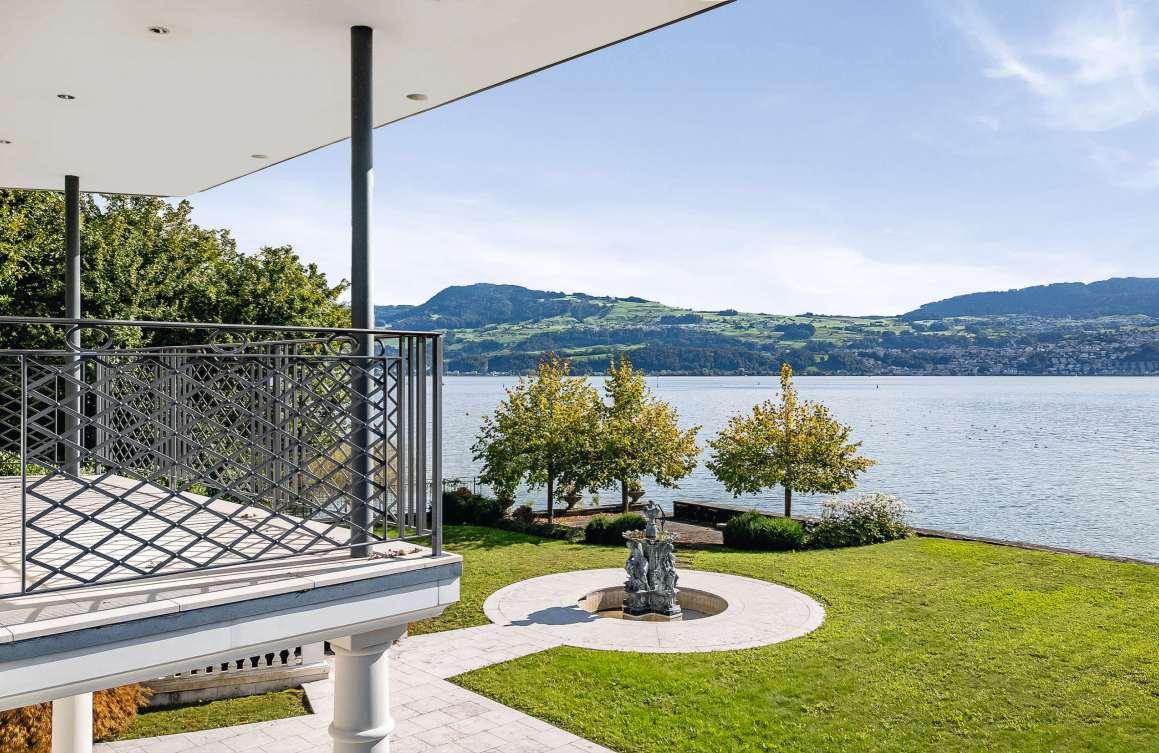 Diese Residenz im zeitlosen Landhausstil vereint absolute Privatsphäremit einem repräsentativen Wohngefühl. Während der prachtvoll angelegte Garten zur Entspannung einlädt, bietet die durchdachte Architektur viel Raum für individuelle Gestaltung. Ergänzt wirdder Komfortdurch eine grosszügige Garagefür vier Fahrzeuge. Ein Zuhause, das Eleganz und Funktionalität perfektvereint –eingebettet in eine privilegierte Lage in unmittelbarer Nähe zum Seeufer