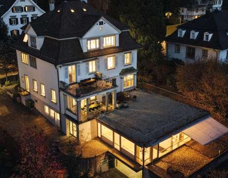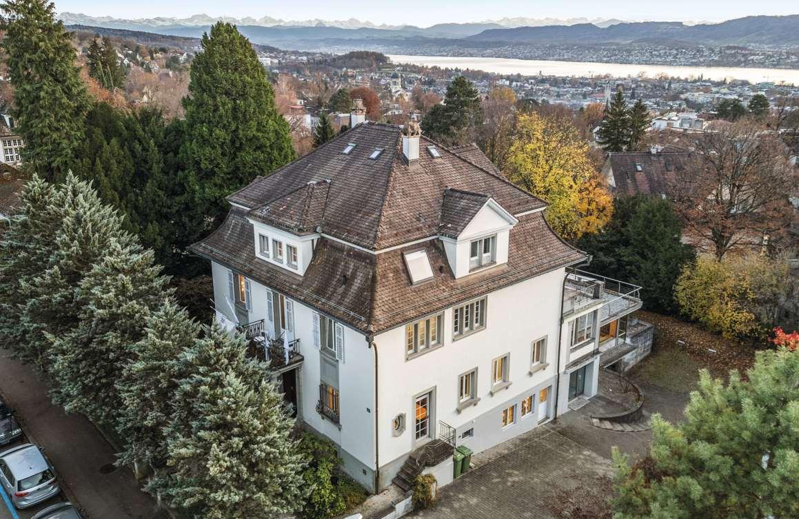 An bevorzugter Adresse am Zürichbergliegt diese Villa aus dem Jahr 1925 ruhig und zugleich in unmittelbarer Nähe zum städtischen Geschehen. Mit 25 Zimmern auf vier Etagen bietet sie äusserst vielseitige Nutzungsmöglichkeiten. Ob als Generationenhaus, zur Umwandlung in ein Mehrfamilienhaus, als Firmensitz oder als Gesundheitszentrum. Die clevere Skelettbauweise des lichtdurchfluteten Anbaus aus dem Jahr 2005 ermöglicht flexible Anpassungen. Die grosszügigen und hohen Räume, die Privatsphäredurch den gewachsenen Garten sowie dieSee- und Fernsicht aus den oberen Etagen unterstreichen diehohe Qualität der Liegenschaft.