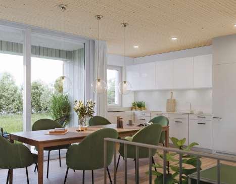 Bei uns sind Familien mitKindern ebenso willkommen, wie Paare, die Freude am stilvollen Wohnen haben. Die 6-Zi.-Miethäuser mitbis zu 160 m2 Nutzflächesind Minergie-P zertifiziertund stehen für Energieeffizienz, Klimaschutz undWohnkomfort. Beim Innenausbauwurde auf eine möglichst natürliche Materialisierung geachtet. Ein stimmiges Farbkonzept schafft viel Behaglichkeitund Wärme. 4der 11 REFH bieten ein loftartiges Galeriezimmer.EinzelneMehrzweckräume können bedarfsweise zugemietet werden. Eigens produzierter Solarstrom, Lademöglichkeit undBoden-Kühlfunktion erlauben ein zeitgemässes Wohnen.Der liebevoll gestaltete Grünraum mitBaumbestand vereintnaturnahesWohnenmit einer vielseitigen undattraktiven Wohnregion mitperfekter Verkehrsanbindung