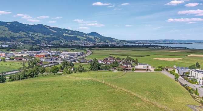 An sonnigerHanglageinWangenSZliegtdieses exklusiveBaugrundstück mit3786m²und unverbaubarer Weitsicht aufden Zürichsee sowiedas beeindruckende Alpenpanorama.Die erhöhte Lage im begehrten WohnquartierOchsenboden vereintNaturverbundenheit, Privatsphäreund eine hervorragende Erreichbarkeit. Zentrum vonWangen, Bahnhof Lachen, Schulen, Einkaufsmöglichkeitenund Gastronomie sind in wenigen Minutenbequemerreichbar.Für die Parzelle liegtmit demProjekt «ALORA» einbewilligtes,architektonisch hochwertiges Bauprojekt vor, das zwei Doppelhäuser, eine exklusiveVilla,über1100 m² Wohnfläche und 21 Tiefgaragenplätze vorsieht. Trotz Genehmigung bietet die WohnzoneW2Flexibilitätfür eigeneNutzungsideen, ohne Architektur-oder Projektverpflichtung.