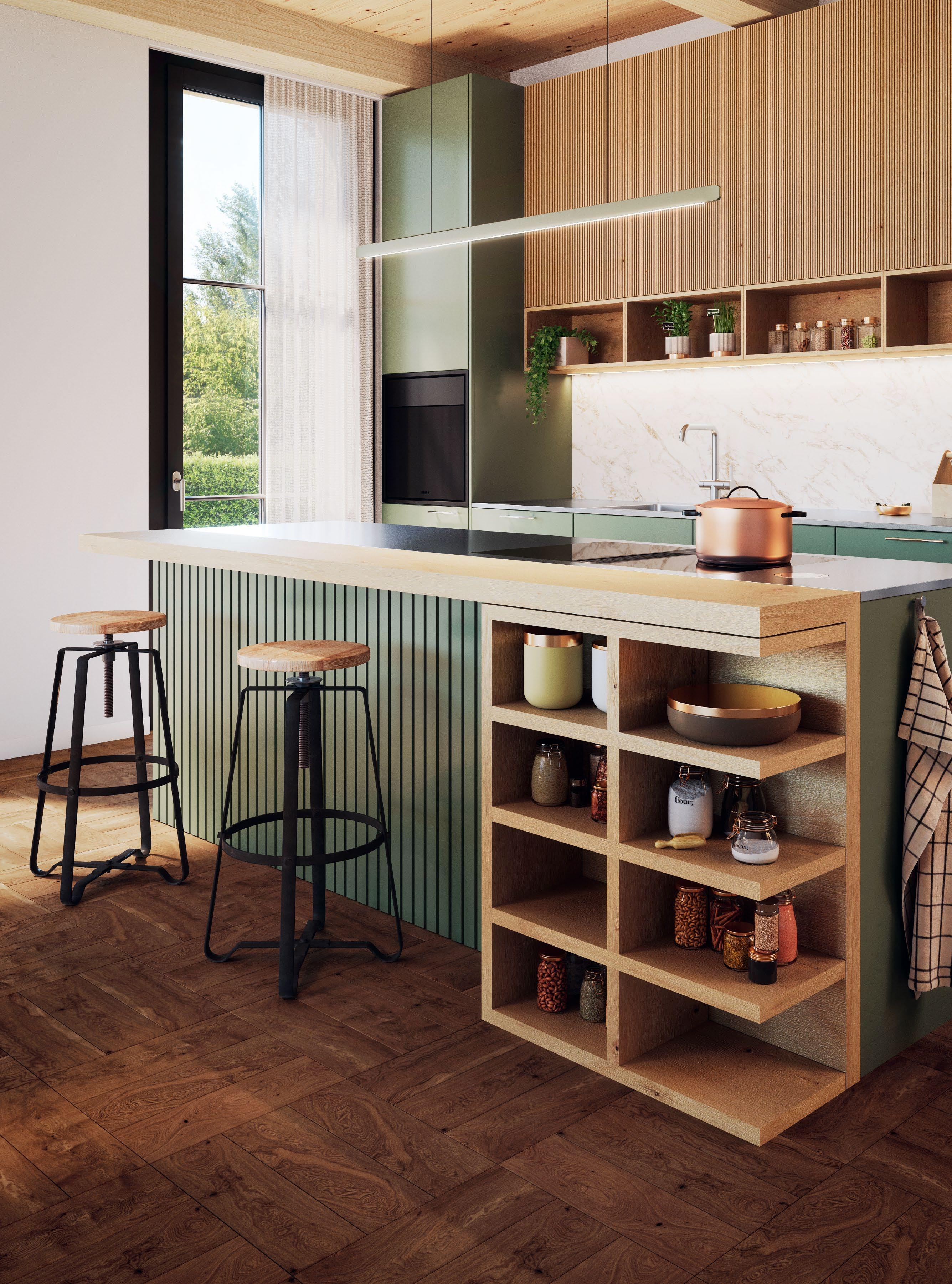 Les élégantes cuisines de la ligne «Orea +» sont toujours aussi authentiques. Conçues sur des formes de base monolithiques, elles sont cependant adaptables aux besoins particuliers de l’utilisateur. Le langage des formes est pur et précis jusque dans les détails et fait la part belle au toucher de matériaux tels que le bois, un marbre de Laas blanc étincelant, l’acier, le béton et un revêtement de porcelaine Dekton inrayable.